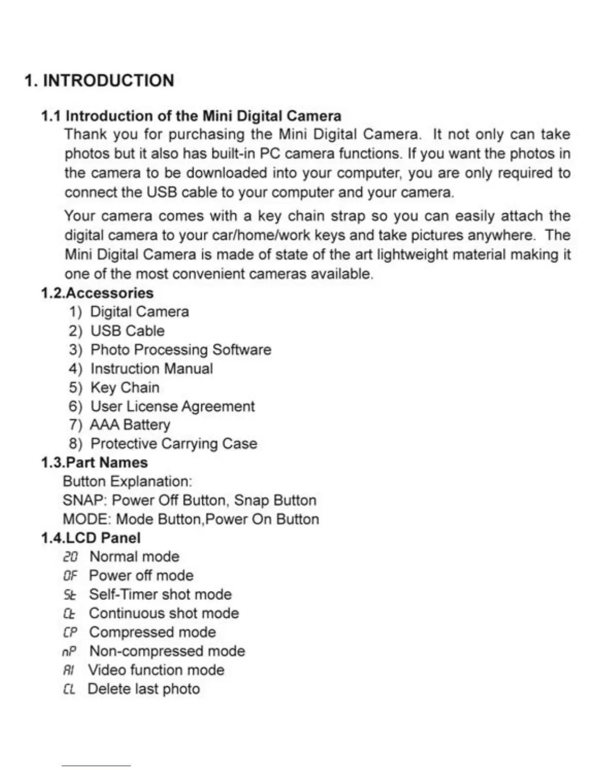 Innovage Mini Digital Camera - Introduction; Part Names