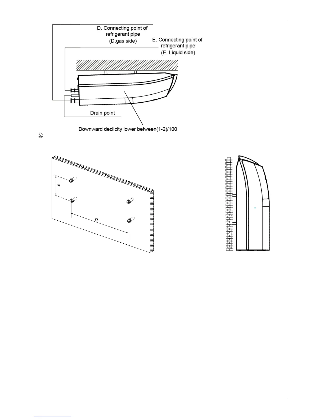 Hang the indoor unit by insert the tapping screws into the hanging arms on the main unit. (The bottom of