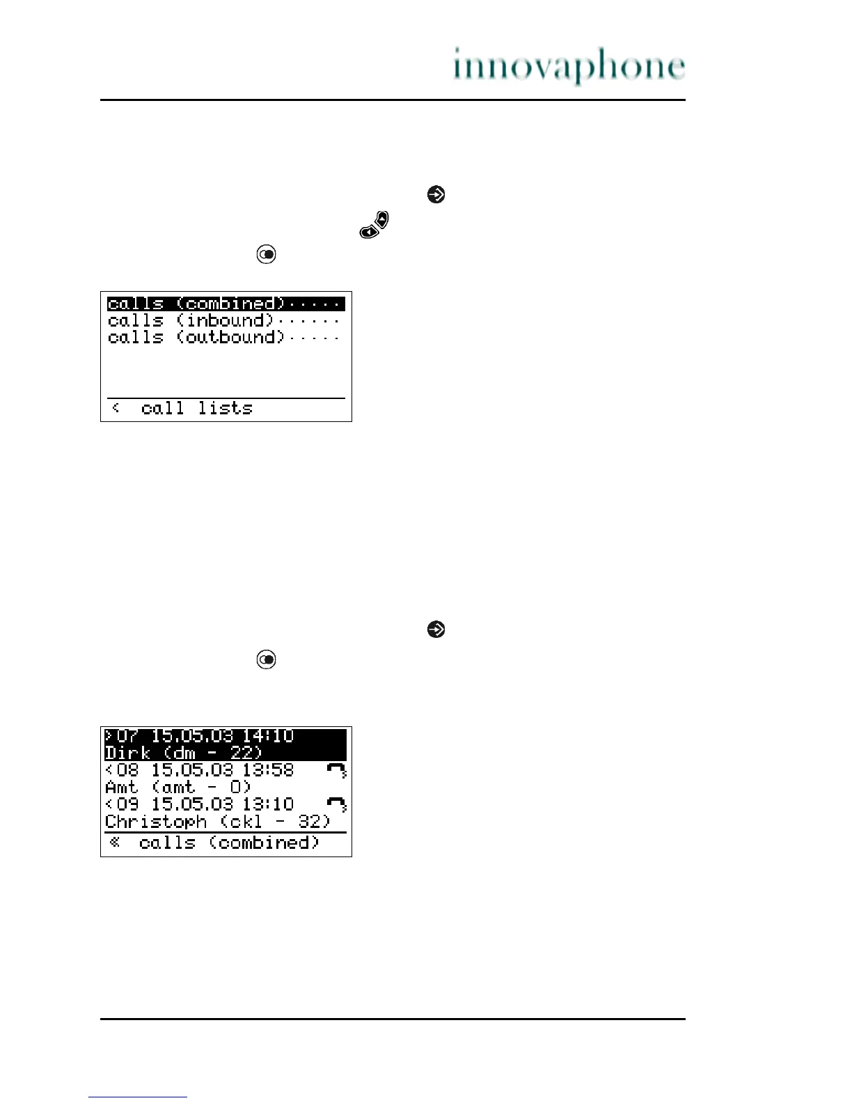 calls (inbound) and calls (outbound) menus. Refer to Section 3.2.4,