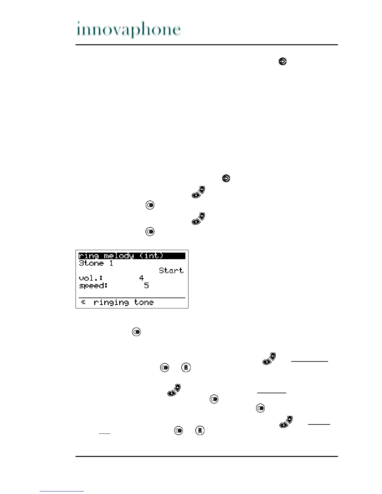 In the Ringtone menu the melody, volume and speed of the internal and