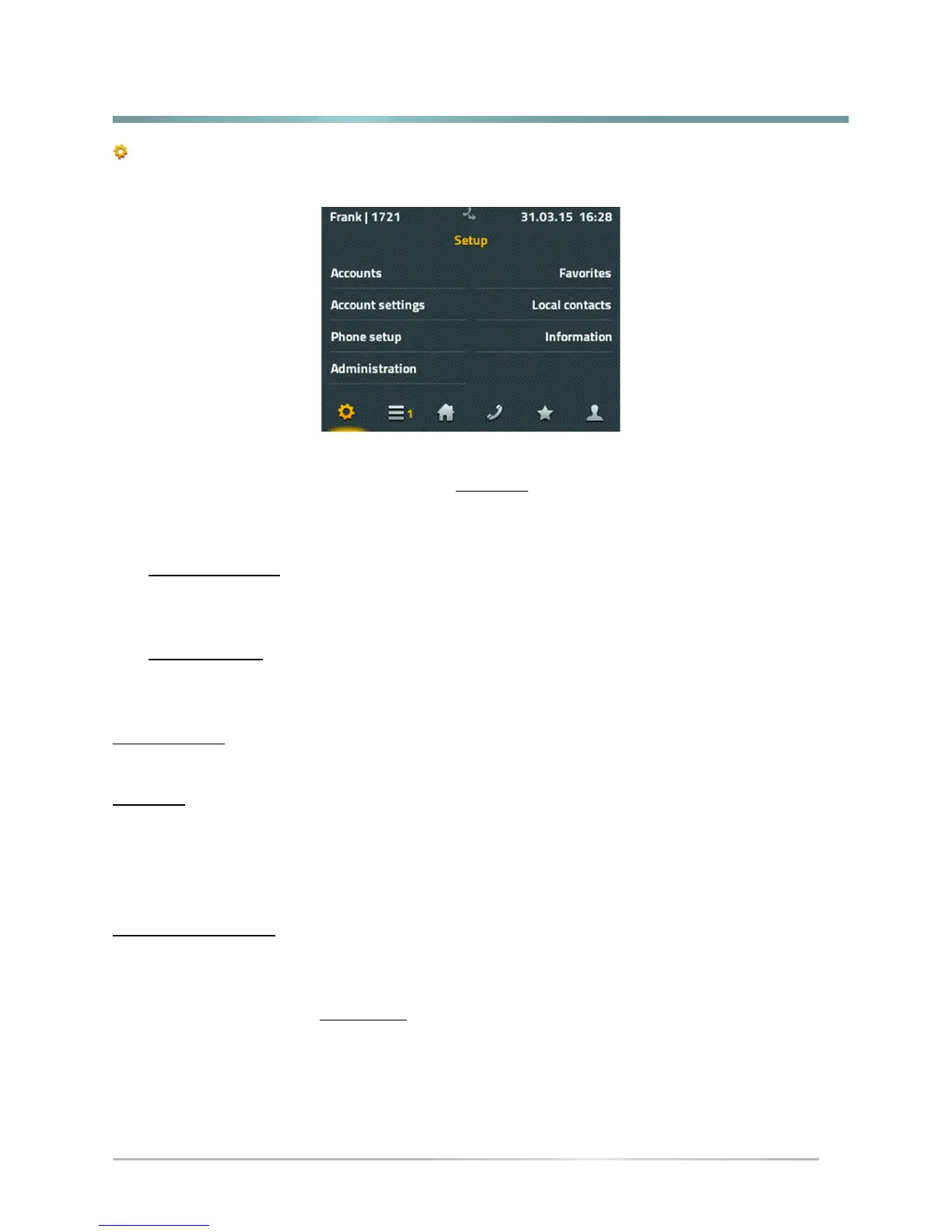 The account setttings include setting up privacy "Do not disturb", the ring tones, changing