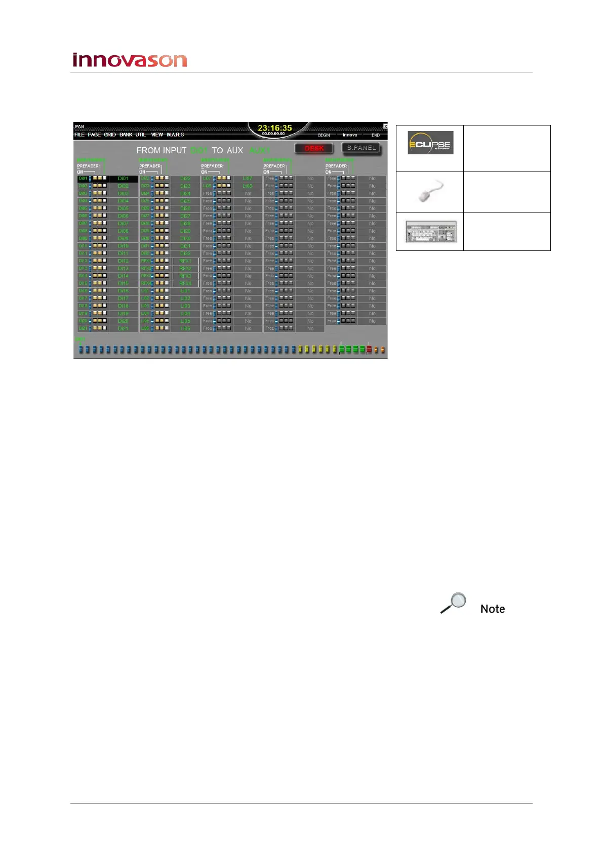 opening the PAN display while an Aux is selected: