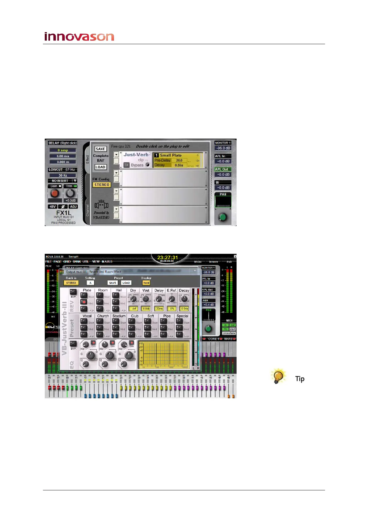 • Press SEL on the FX1 Aux channel and click on the