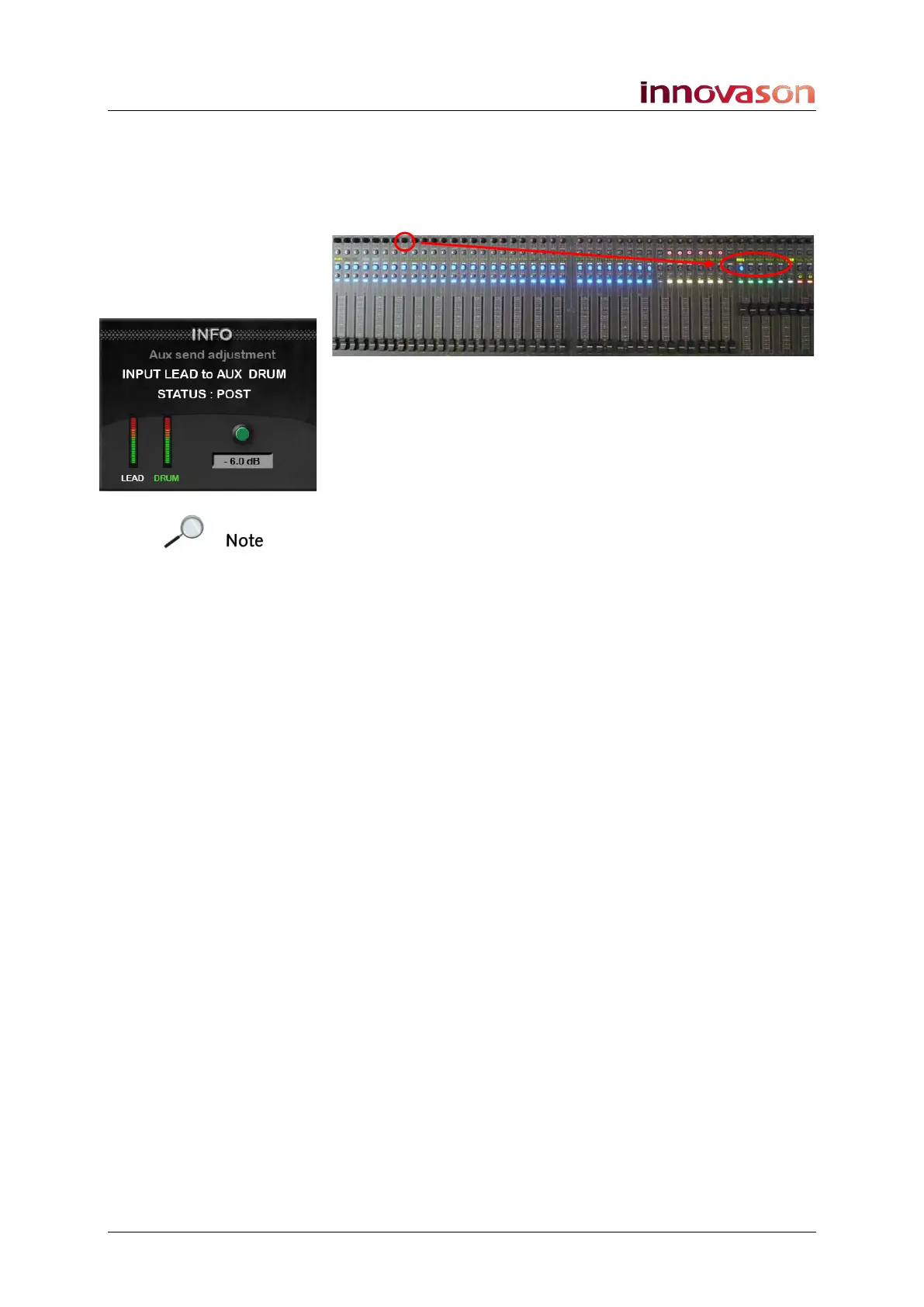 indicated by flashing SEND Labels on the Aux Fader strips.