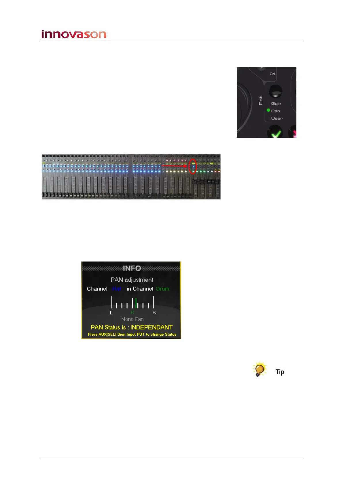 1. Switch the Fader strip pots to Pan mode using the Pot.