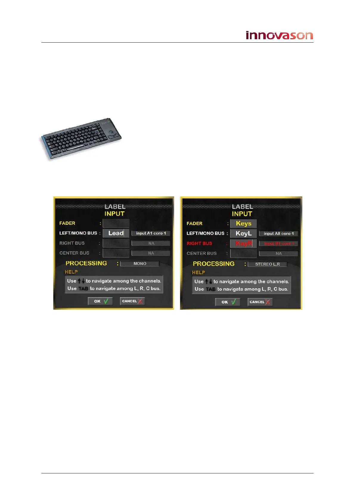 The LEFT and RIGHT input Labels are used on the Main Mix