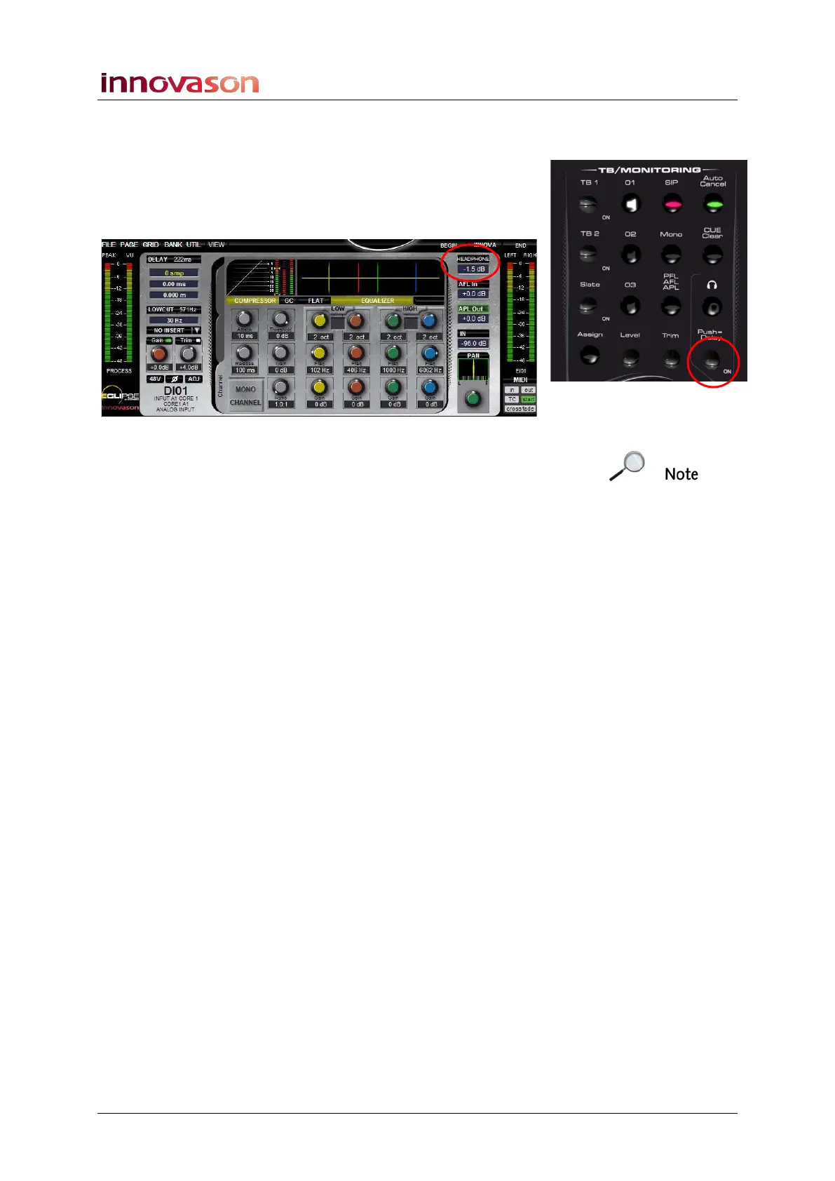 Note that the Headphone mute button and Push Delay function