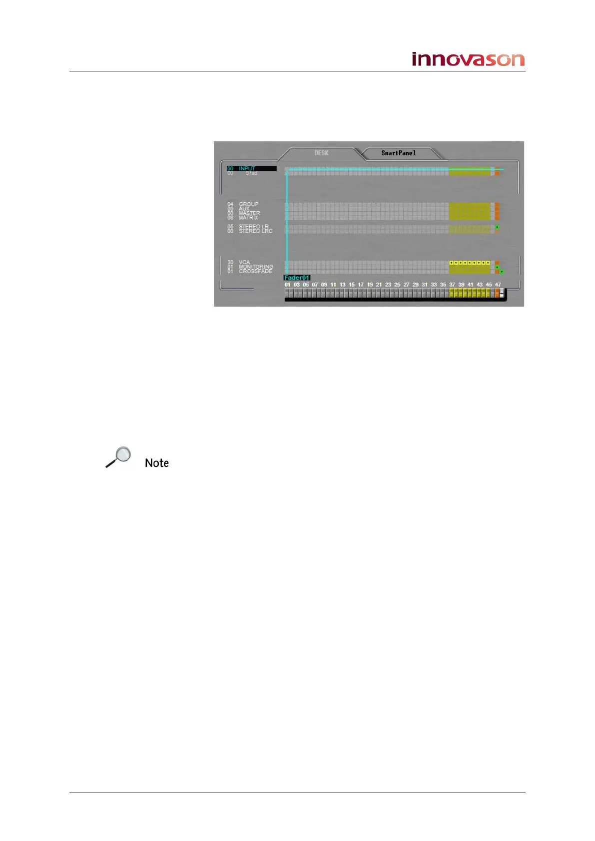 • MONITORING – a stereo monitoring fader (orange).
