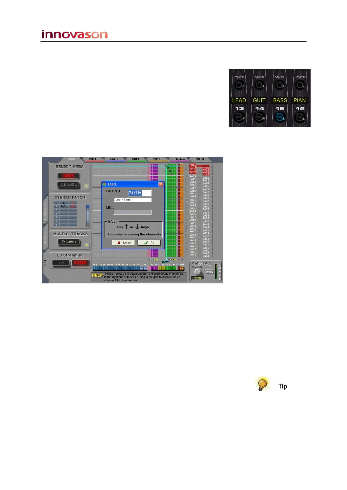 patched from a mix bus, the user Label on the Fader strip or