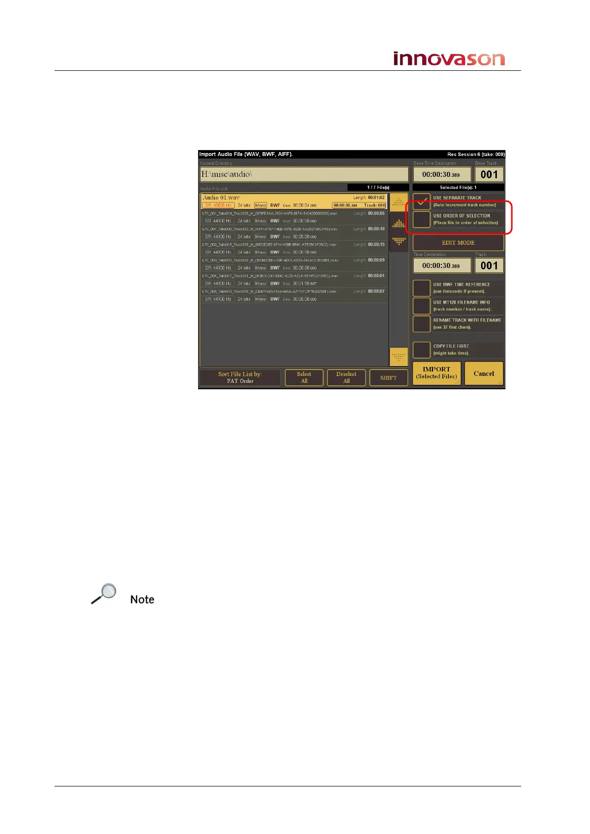 Using this method, files can be imported to tracks in any order.