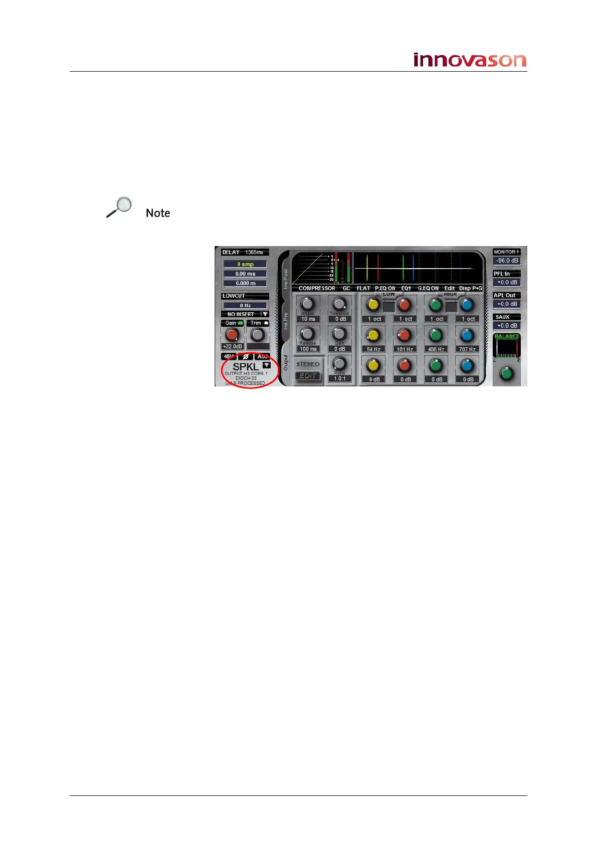 You will see the output patch name – e.g. SPKL – and any