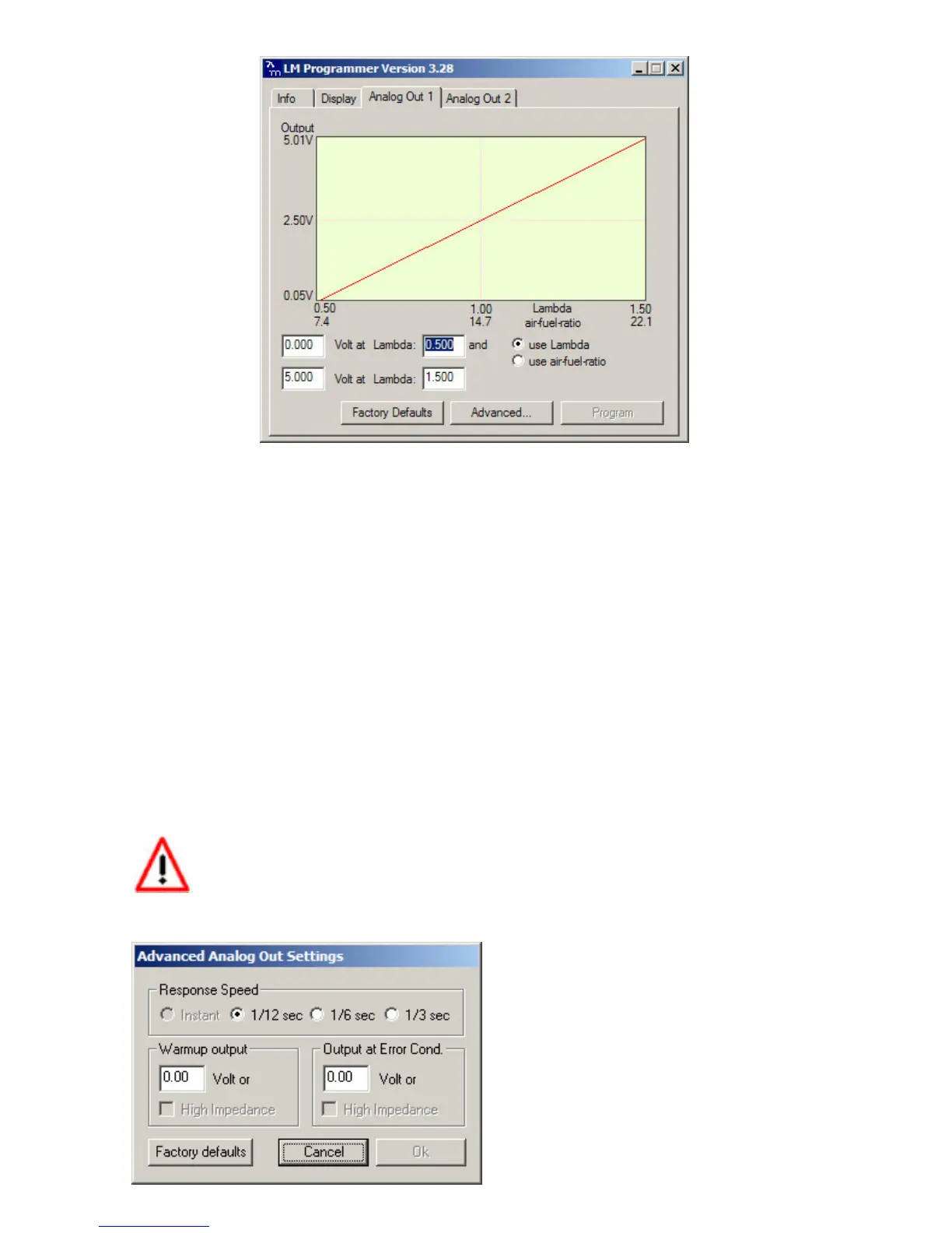 This shows the analog output voltages versus Lambda for one of the two