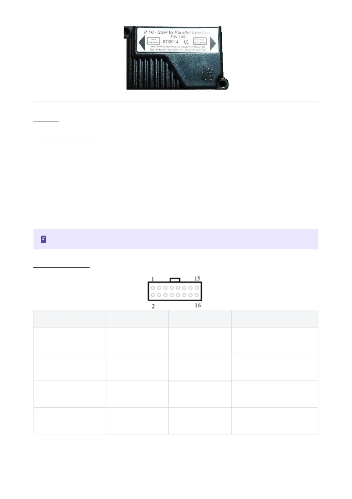 four parallel output pins. If the BV30 is set to Binary, it will issue the vend signals as a binary pattern on the parallel