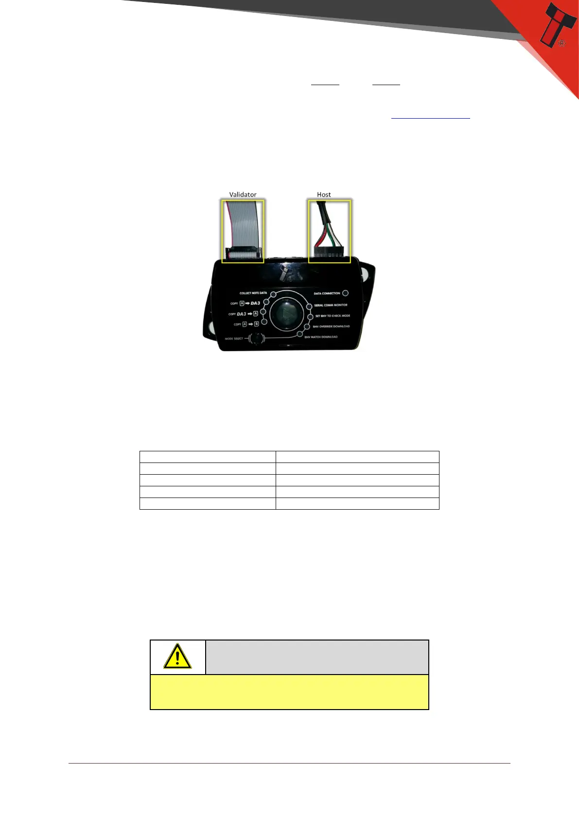 ribbon cable needs to be connected between the validator port on the da3 and the