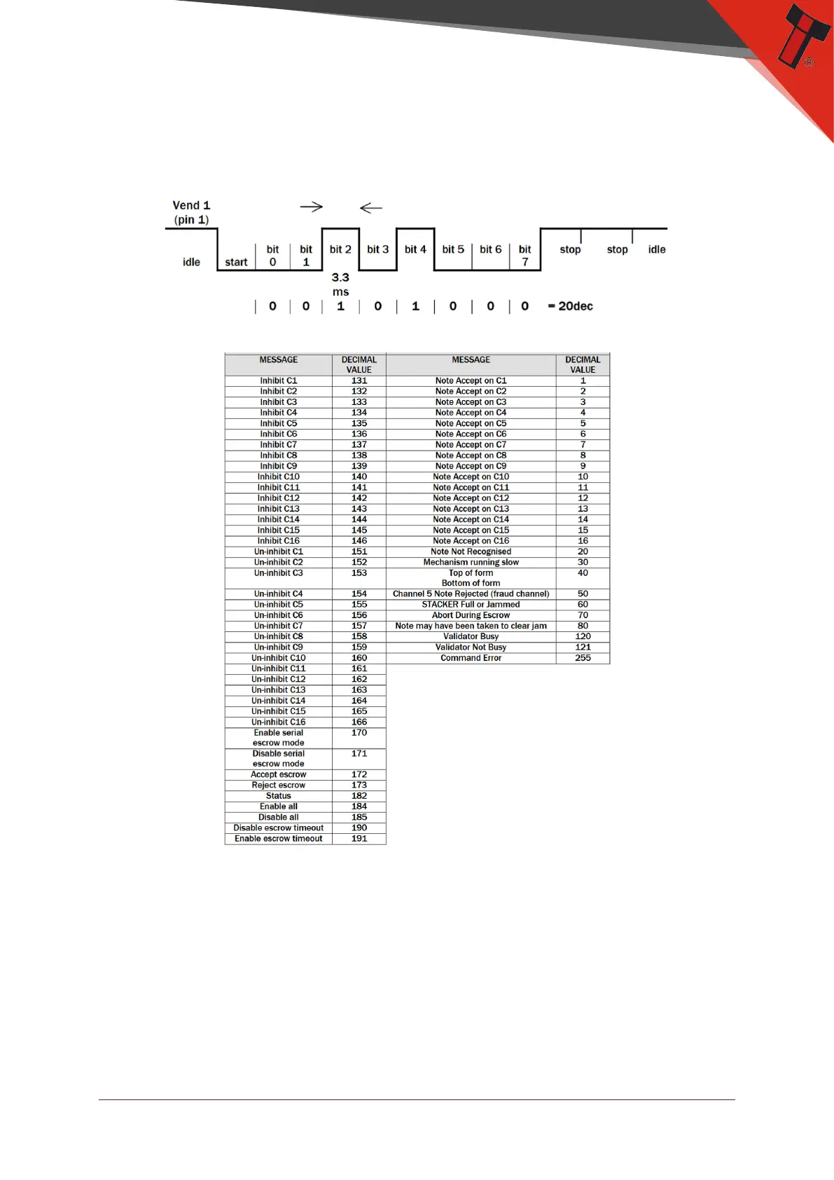See below a list of recognized Receive and Transmit codes: