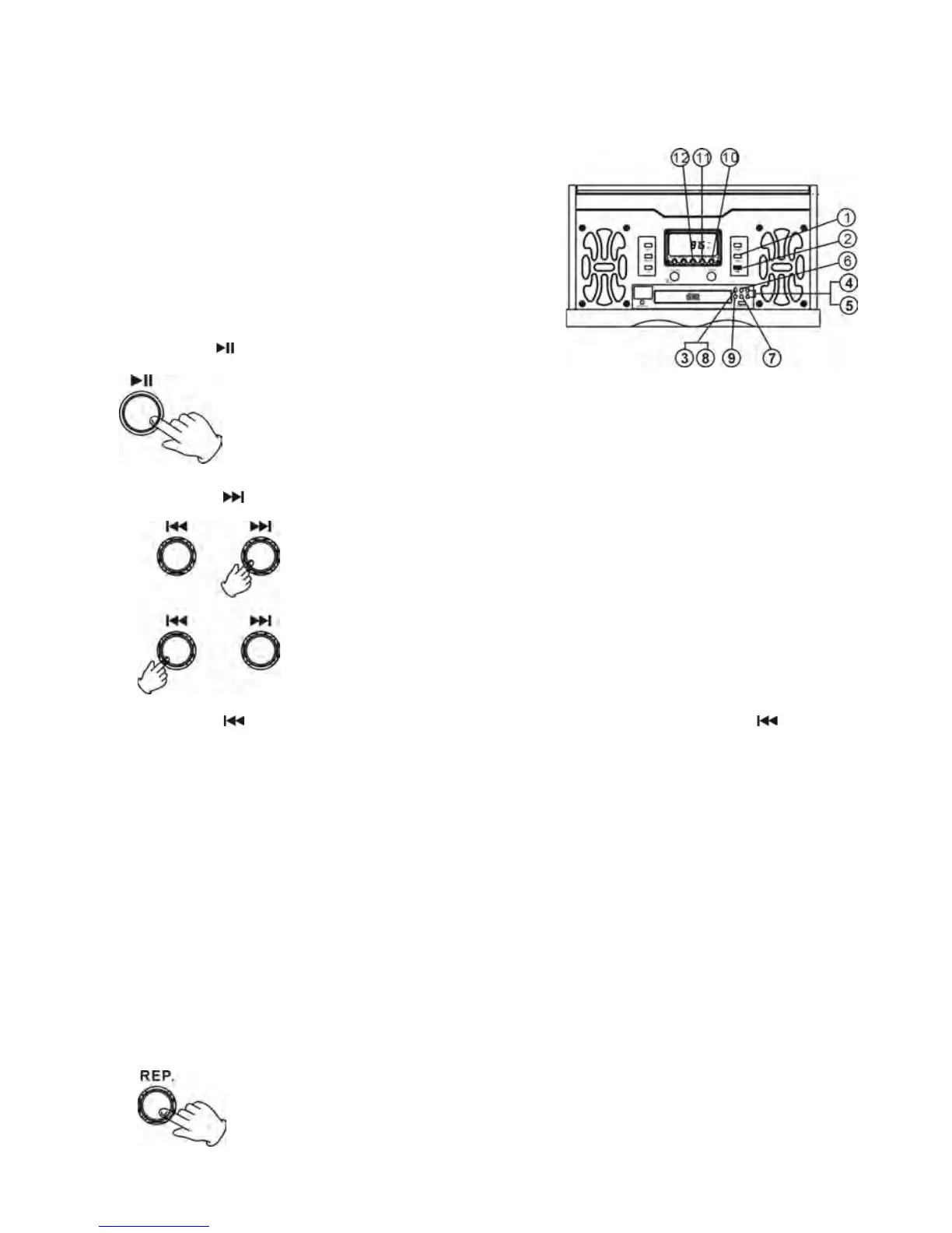 Repeat 1--- Press this button once to repeat playing the current track. “REPEAT 1” will show on the