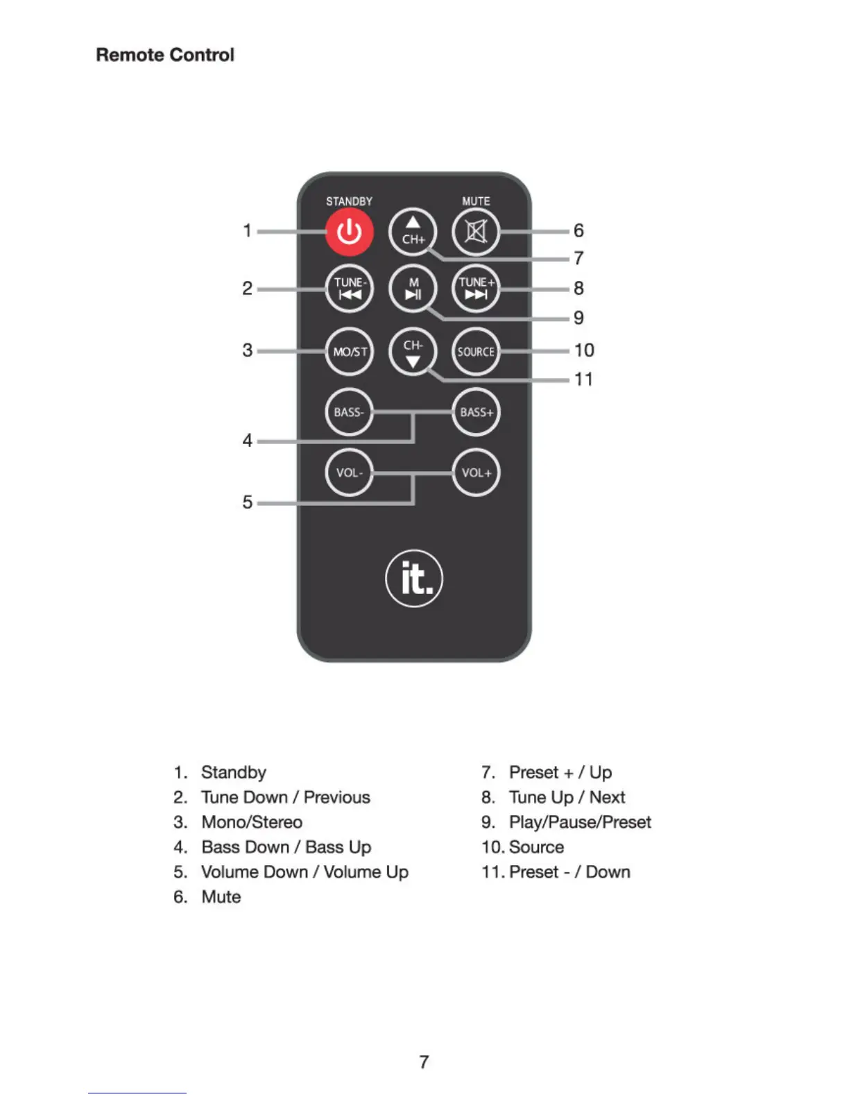 Innovative Technology ITSB-200 - Remote Control Operations; Remote Control Buttons