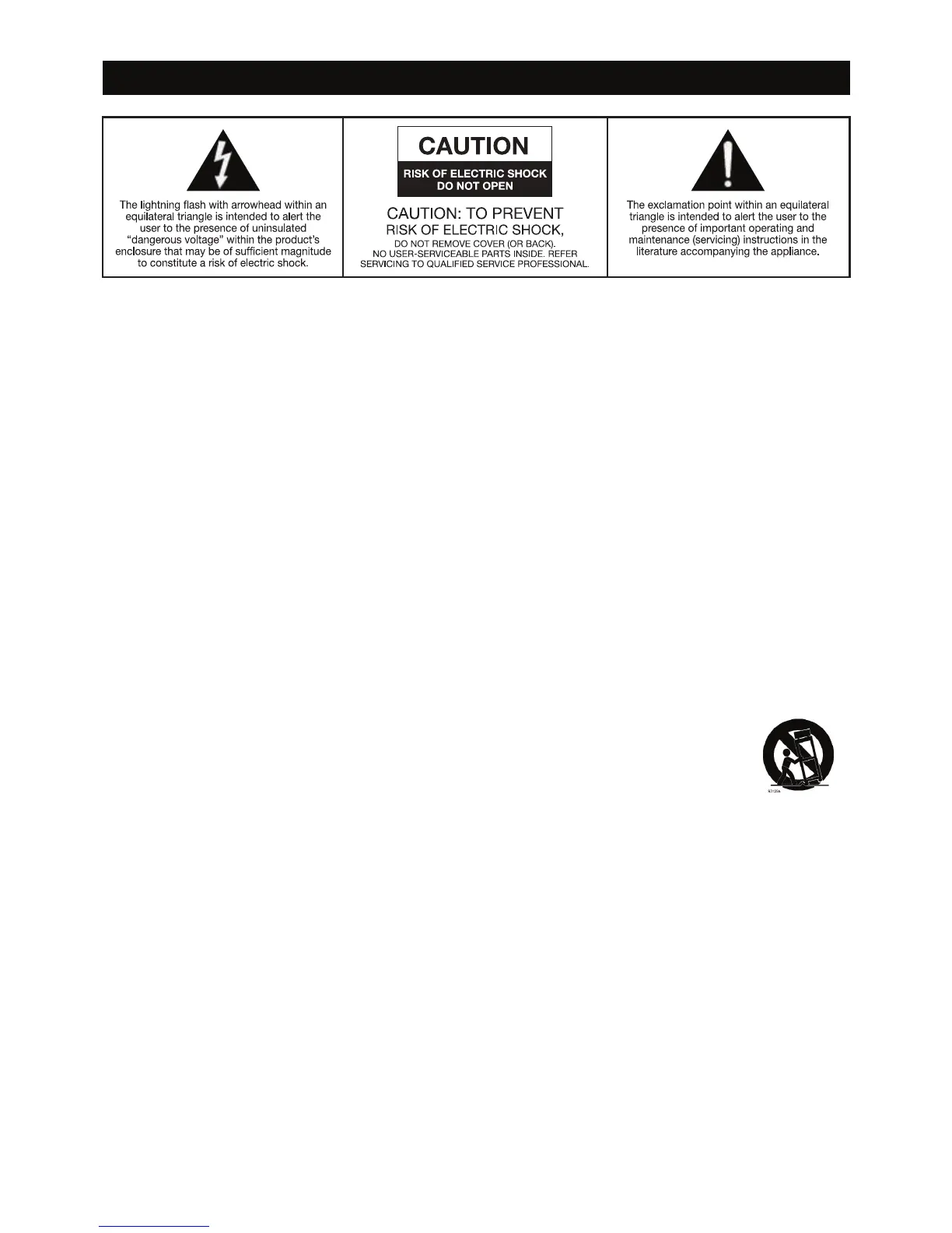 15. Refer all servicing to qualied service personnel. Servicing is required when the apparatus has been damaged