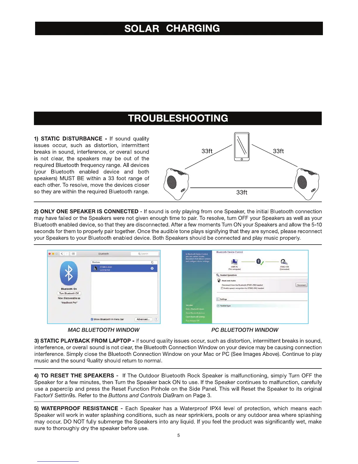 3. We suggest to charge fully via USB, then solar keeps the rock speaker battery topped on.