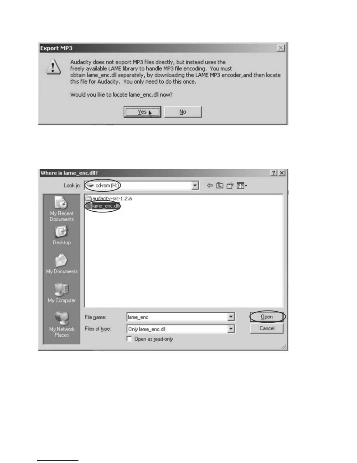 5. Another box appears to locate the “CD ROM”. You will find the “lame_enc.dll” software. Click the