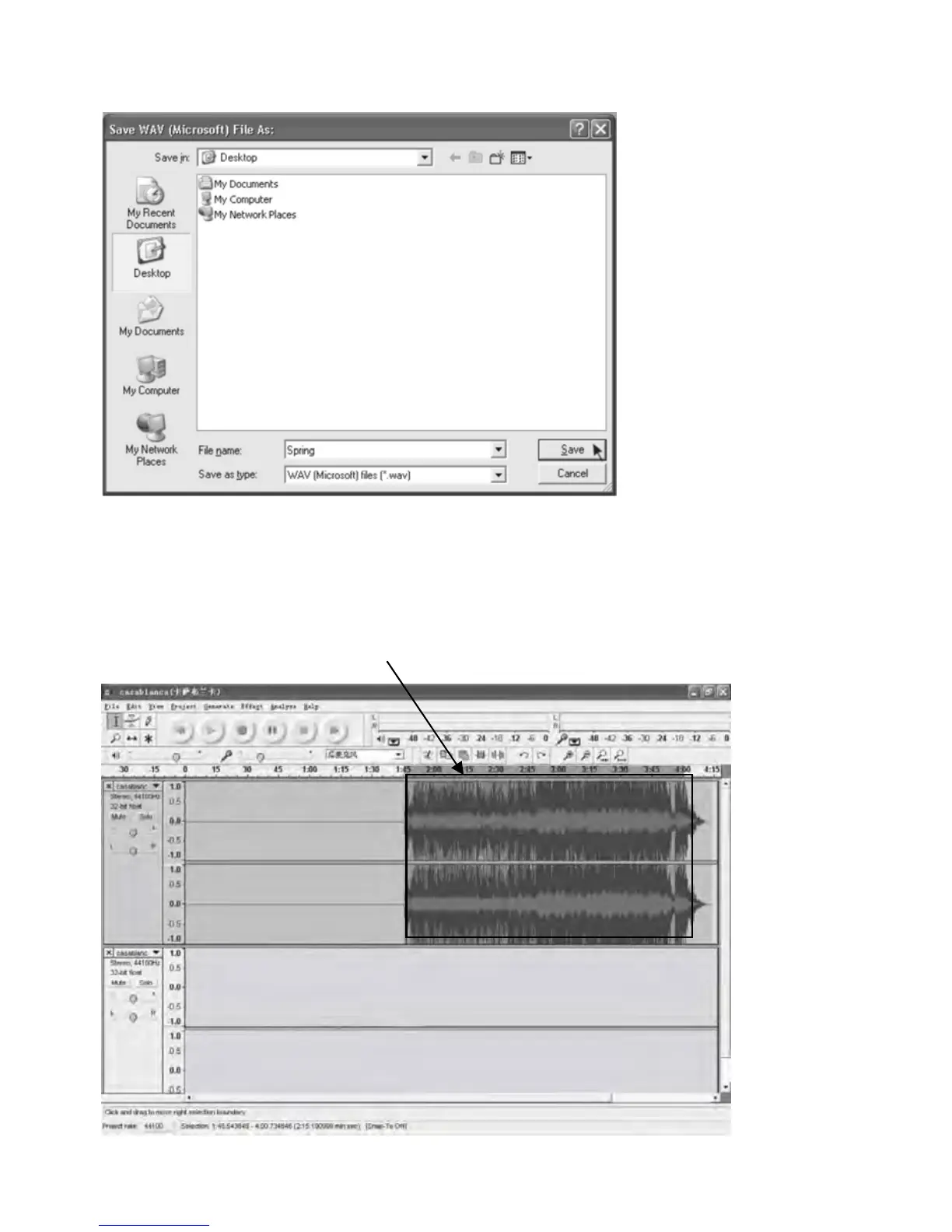1. Move cursor to the wave graphic area at 1:45 (beginning of 2