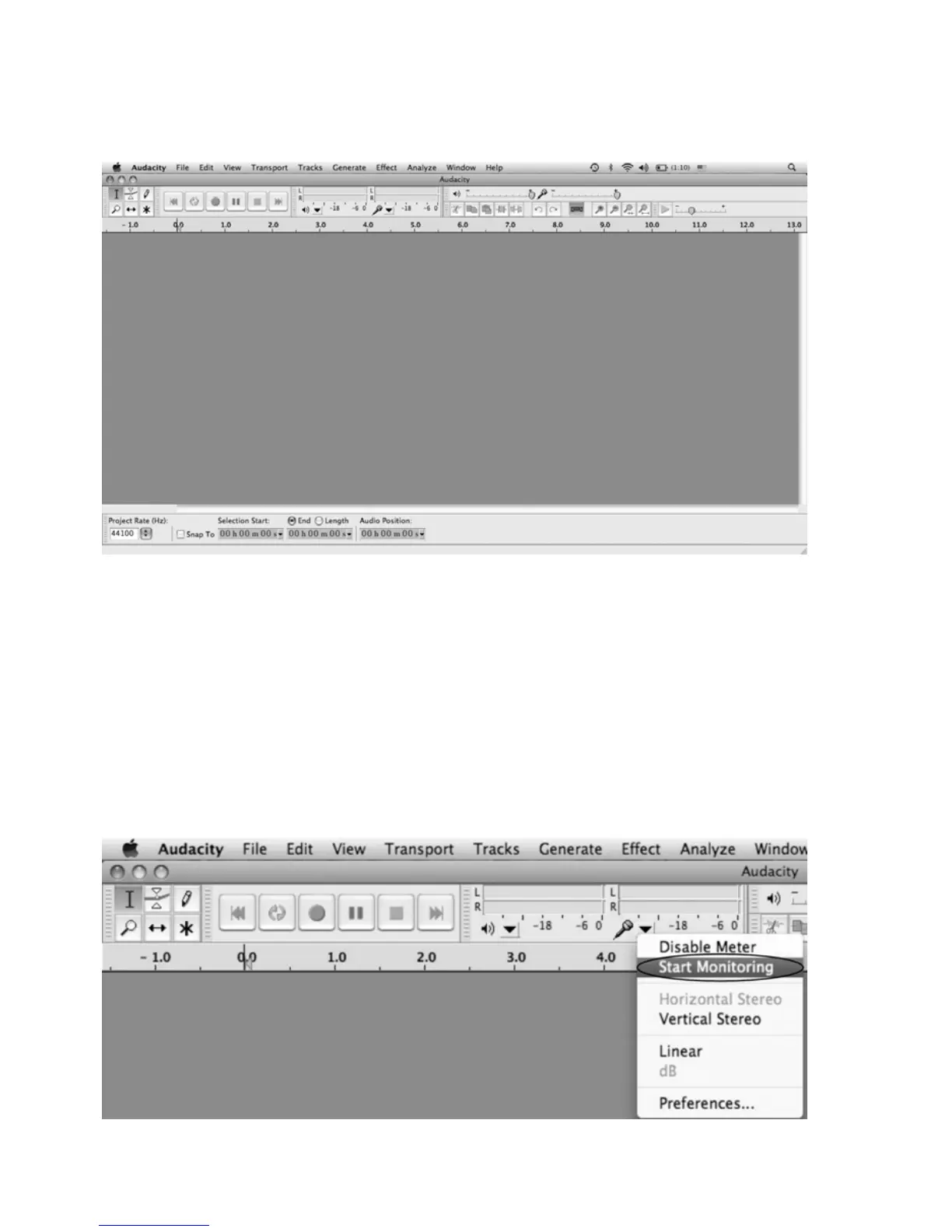 Start Monitor. (If you don't see the input and output level meters, open your Preferences again as