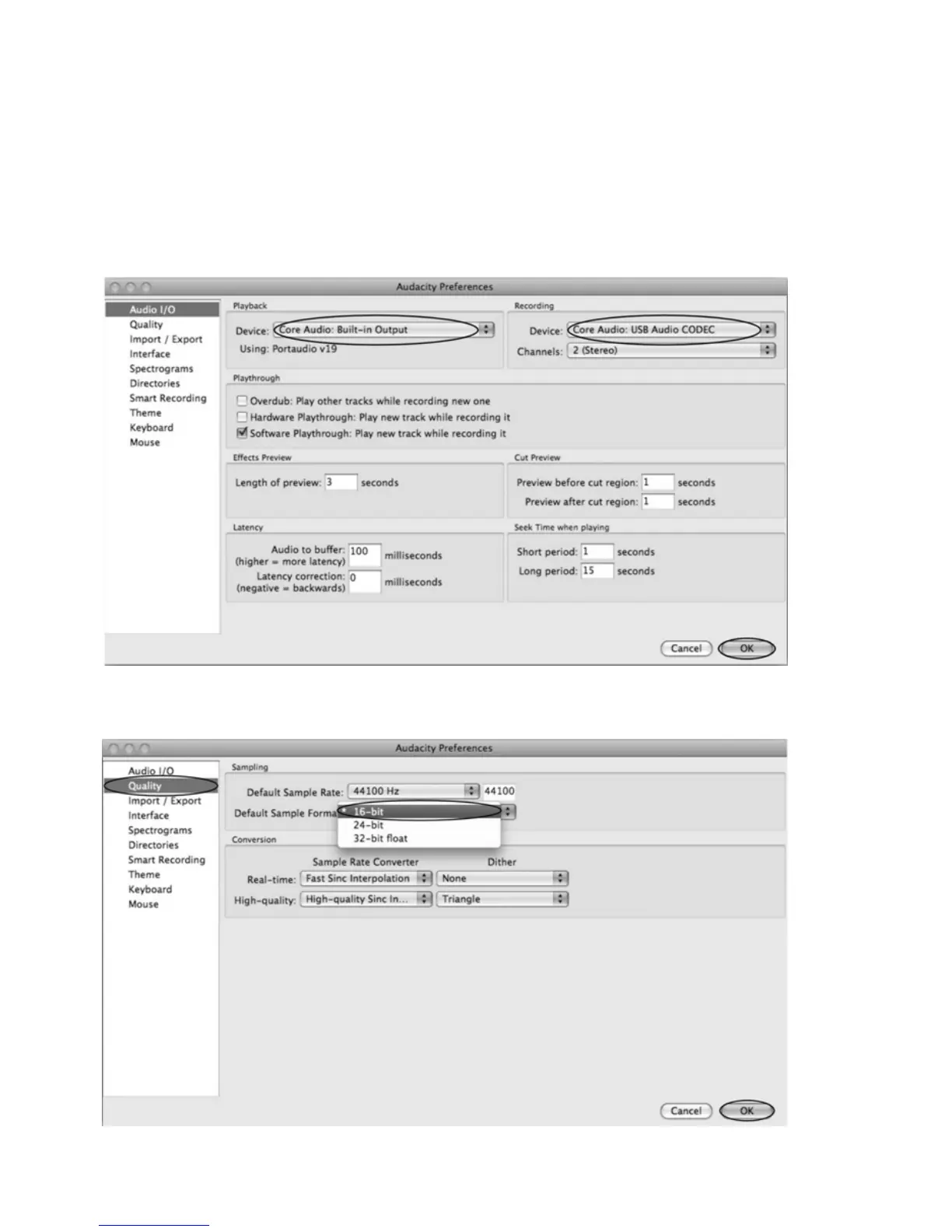 z Click the “Audio I/O” at the Audacity Preferences interface.