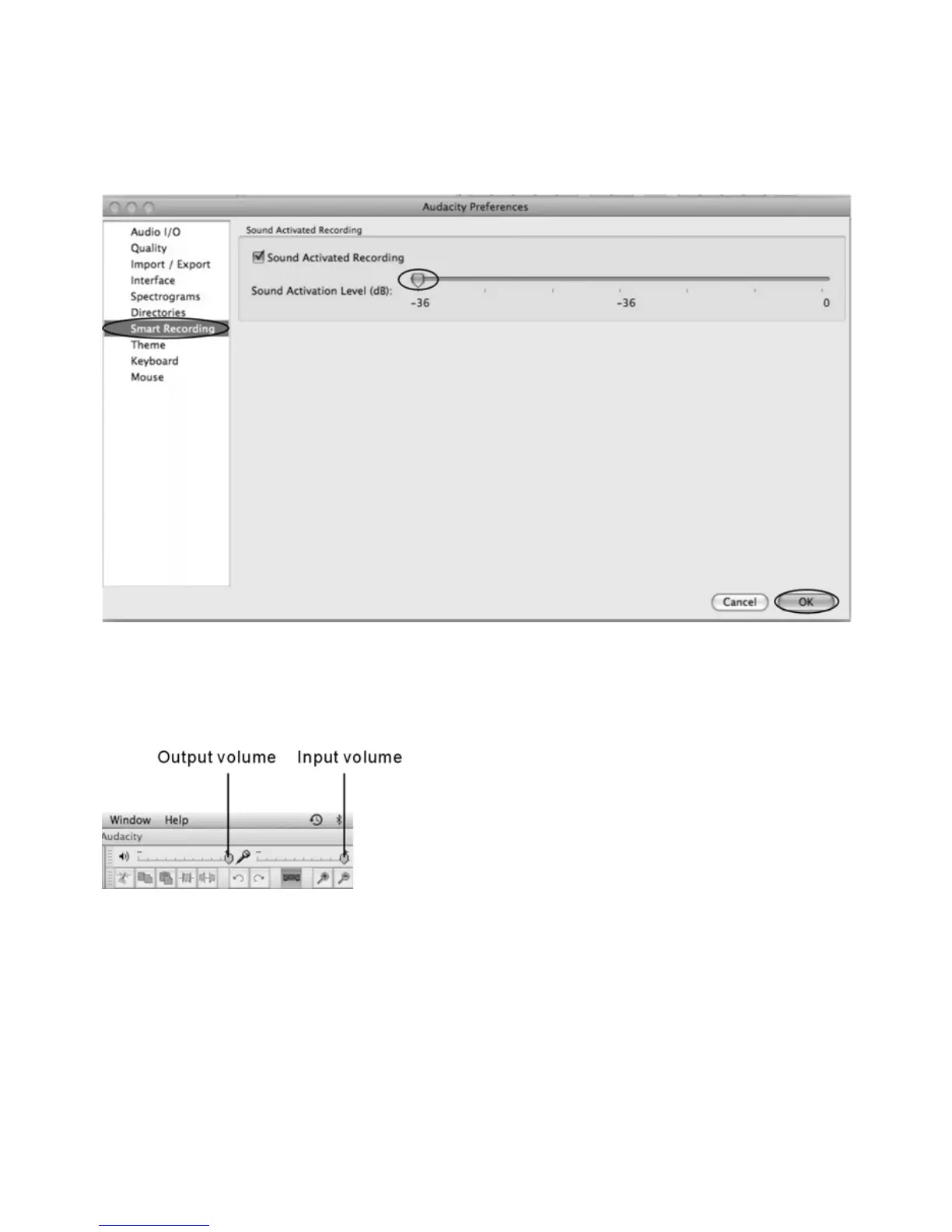 To select the Smart Recording in the Audacity Preferences interface, and set the Sound Activation