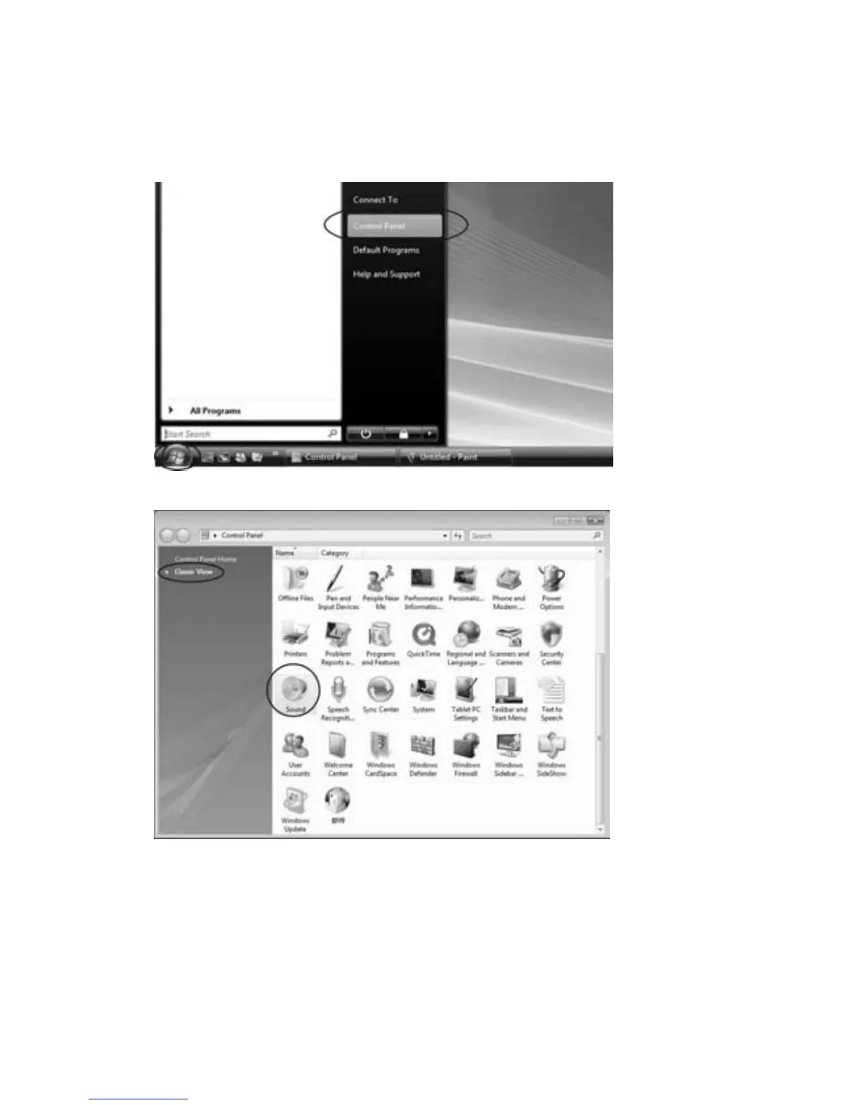 z Click“Start”atthelowerleftcorner,gototheControlPanel.