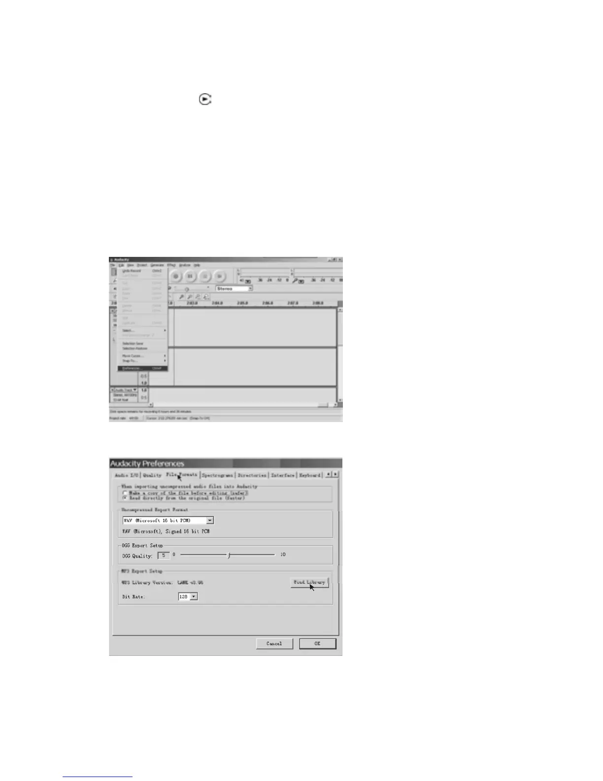 PrepareforMP3Export‐‐‐(Additionalsoftware“lame_enc.dll”needstobeinstalled.)