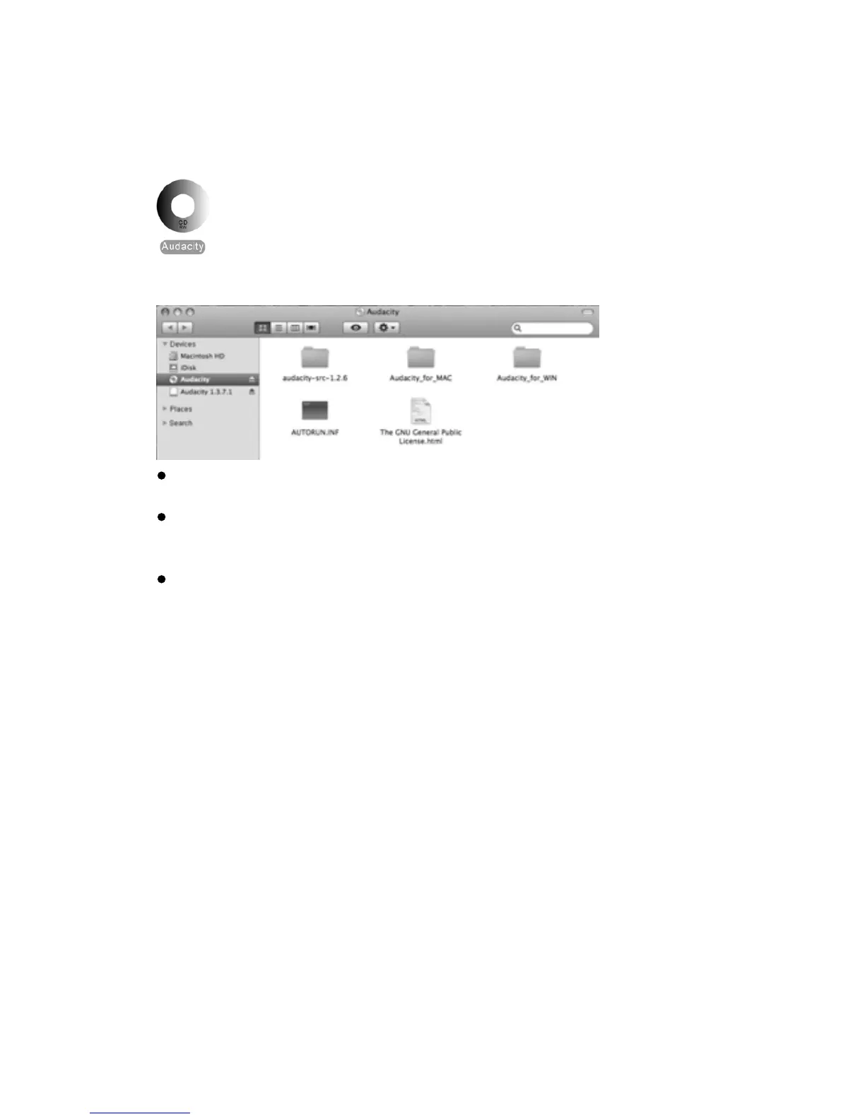 1. Please insert the Audacity soware disk that comes with your unit. Click the Audacity disk on