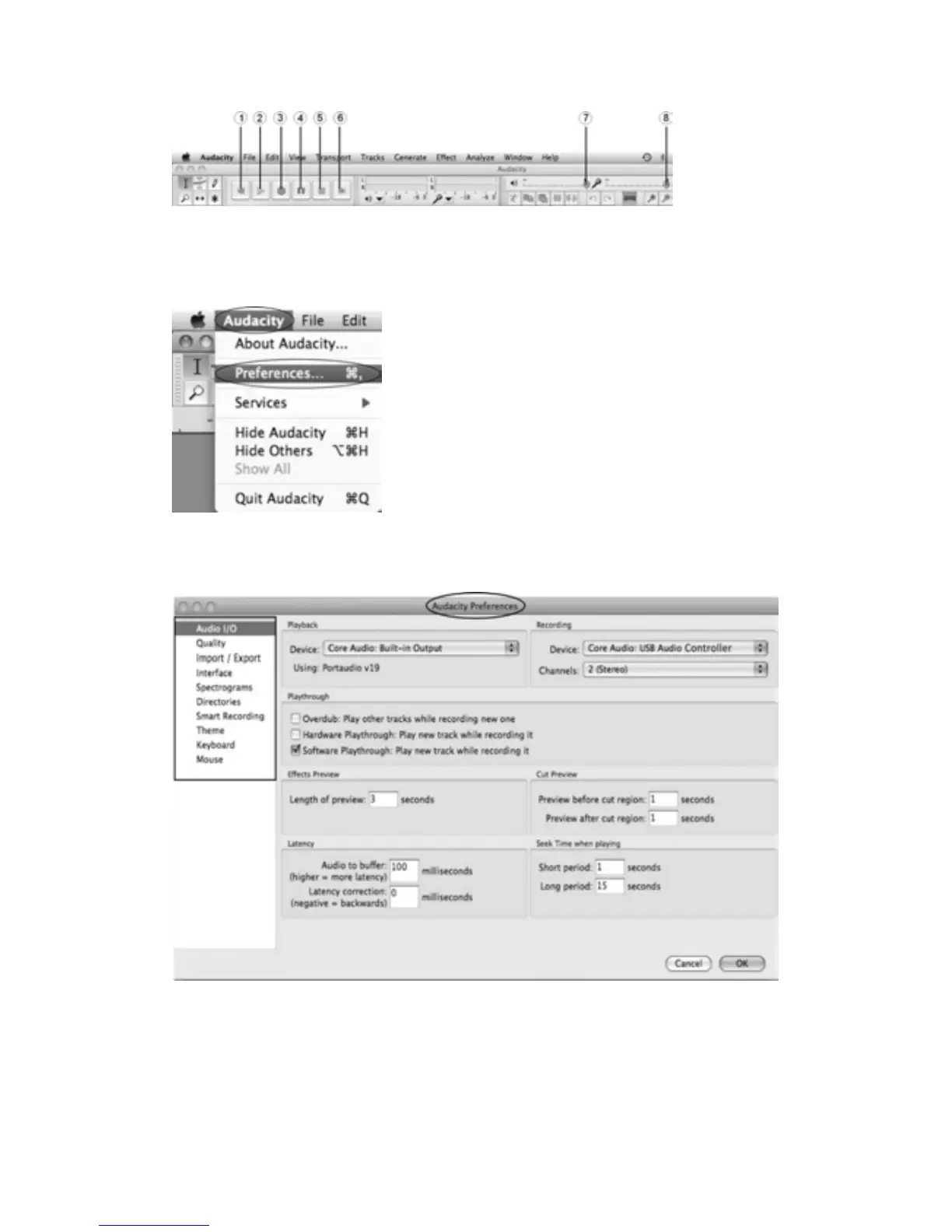 z The screen will open up Audacity Preferences. You can see the Audio I/O, Quality,