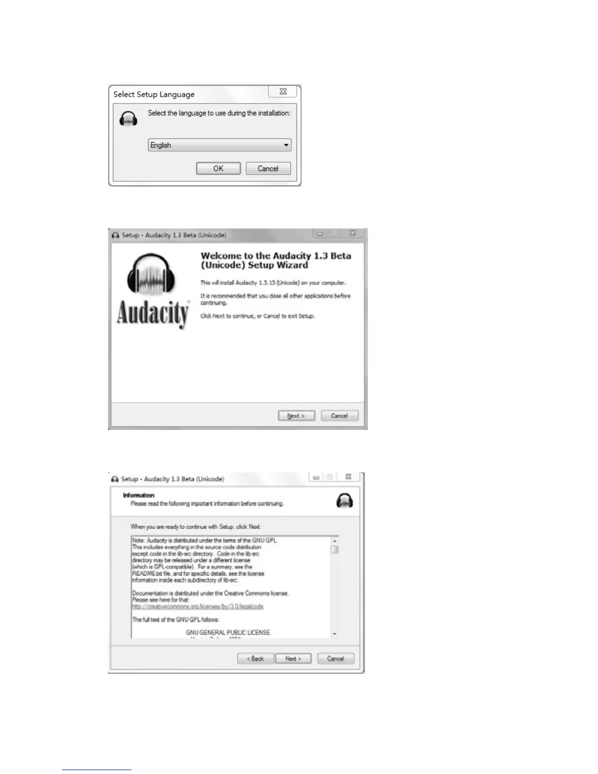 b)Audacity1.3Betasetupwizardappearsonthescreen.ClickonNextbutton.