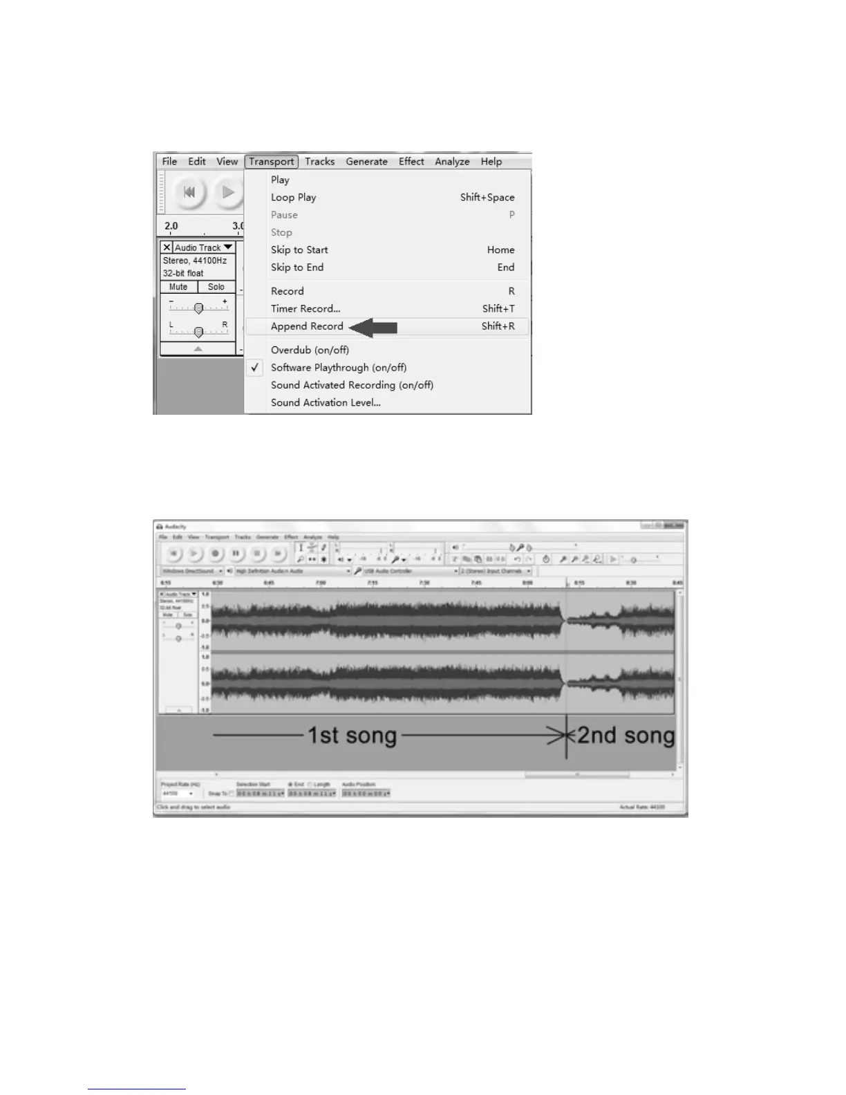 “Append Record” (refer the picture above). Soon the 2nd song will continue to record on the