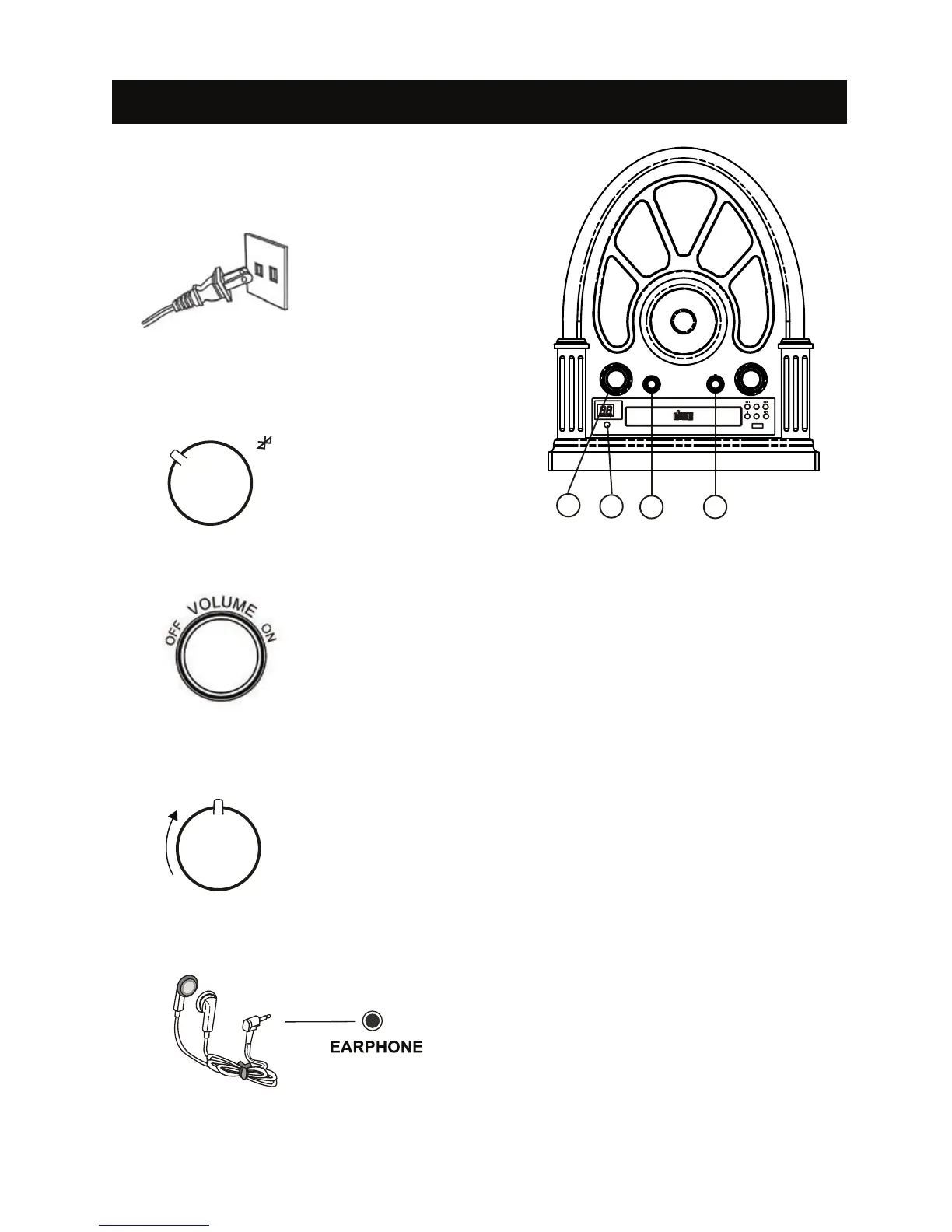3. Rotate the VOLUME knob clockwise to adjust to desired sound level.
