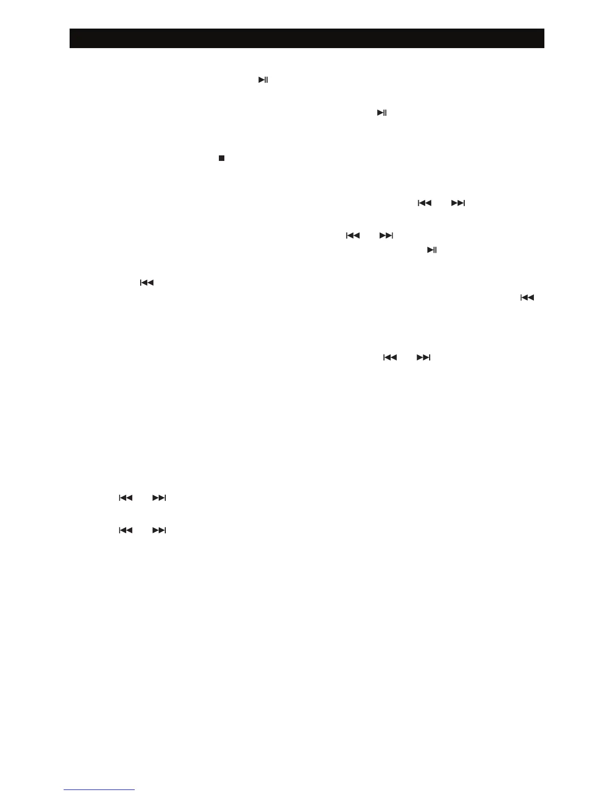from the beginning. To return to the beginning of the previous track, press the