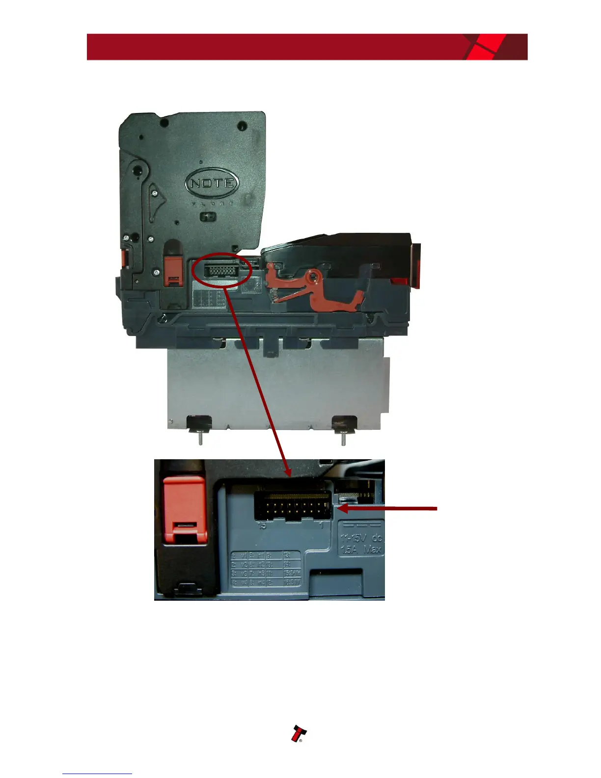 The connector needed to set up and interface the NV11 validator is easily accessible