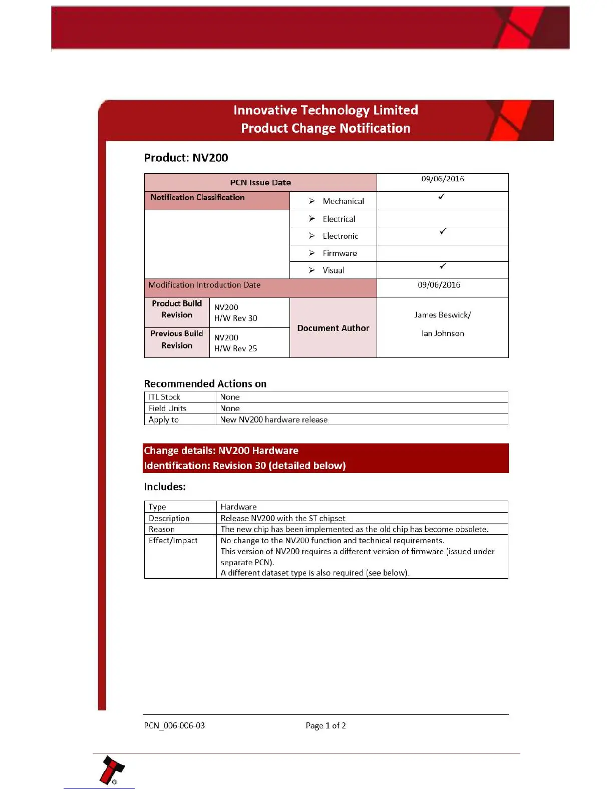 Copyright © Innovative Technology Ltd 2016 Doc: NV200 Family Manual