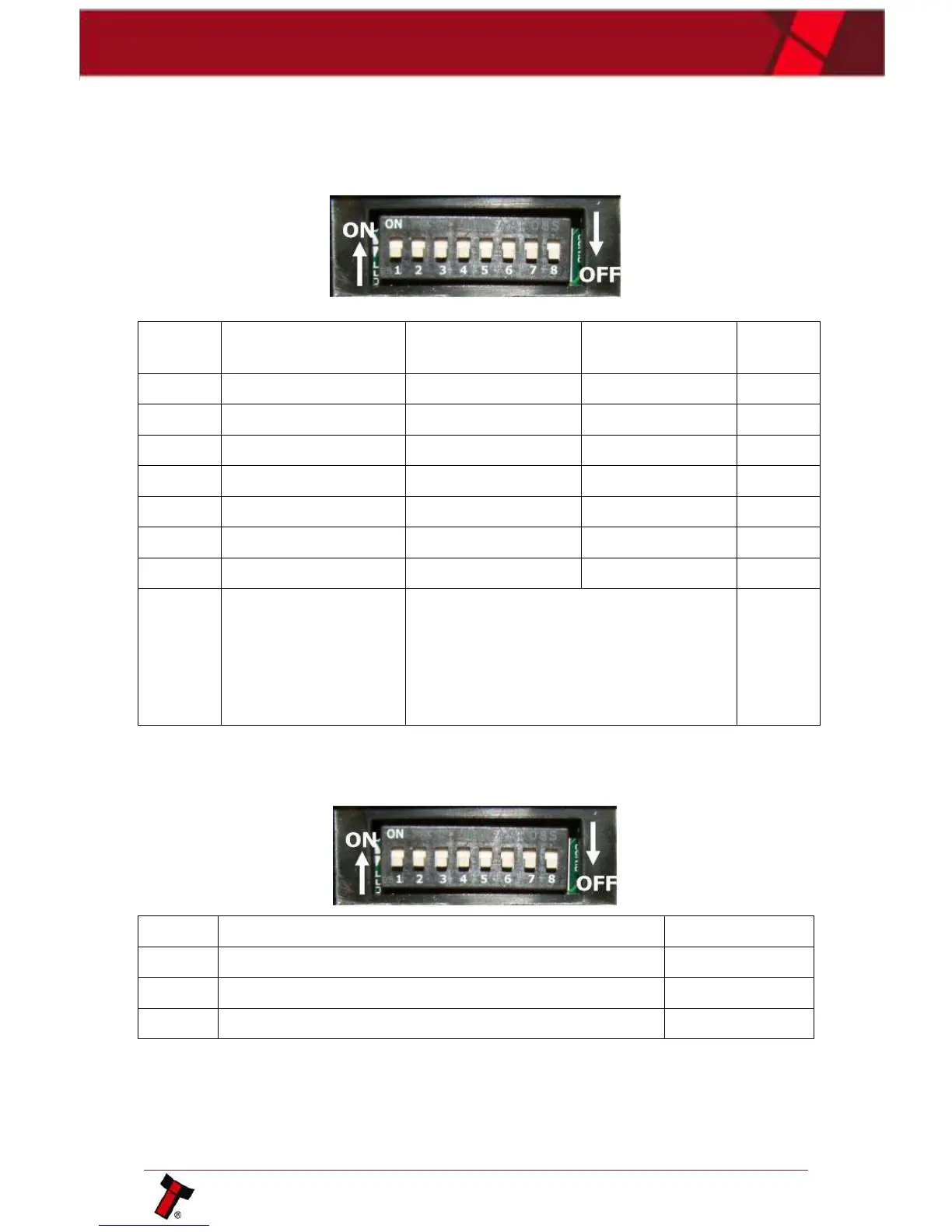 set the various options for the unit. A summary of the switch options are below: