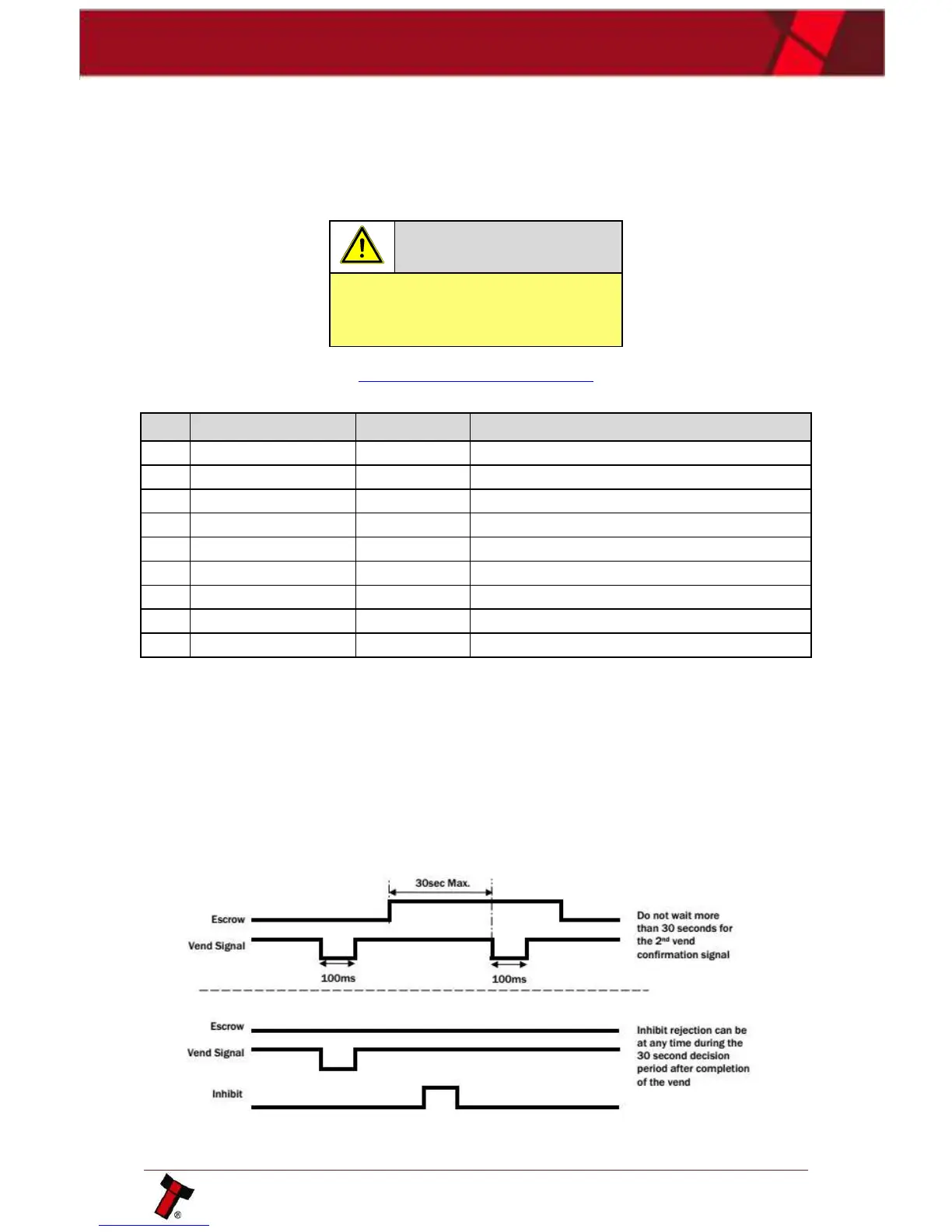 high and must be set to low (GND) to enable banknote acceptance. If no Inhibit is