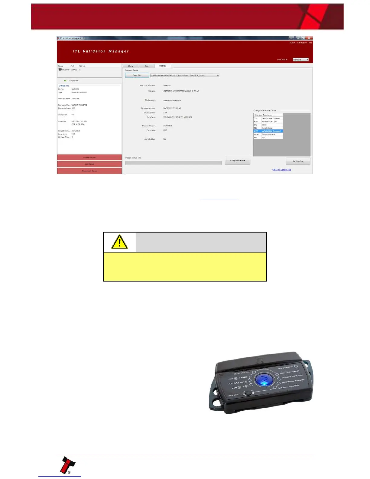 program ITL banknote validators in the field, without the use of a PC. Dataset and