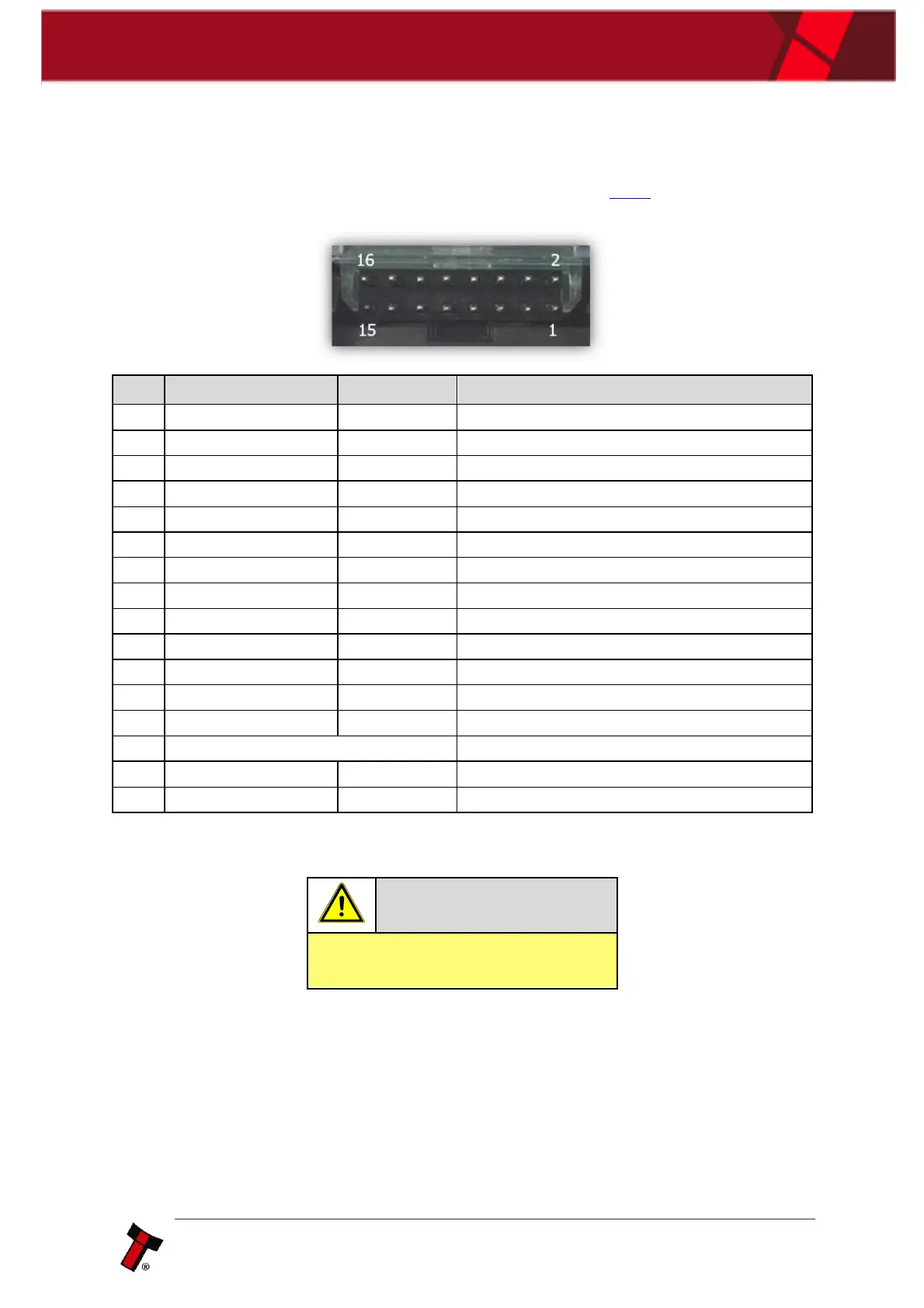 Below is an image of the 16-way connector, refer to section 2.4.1 which details how