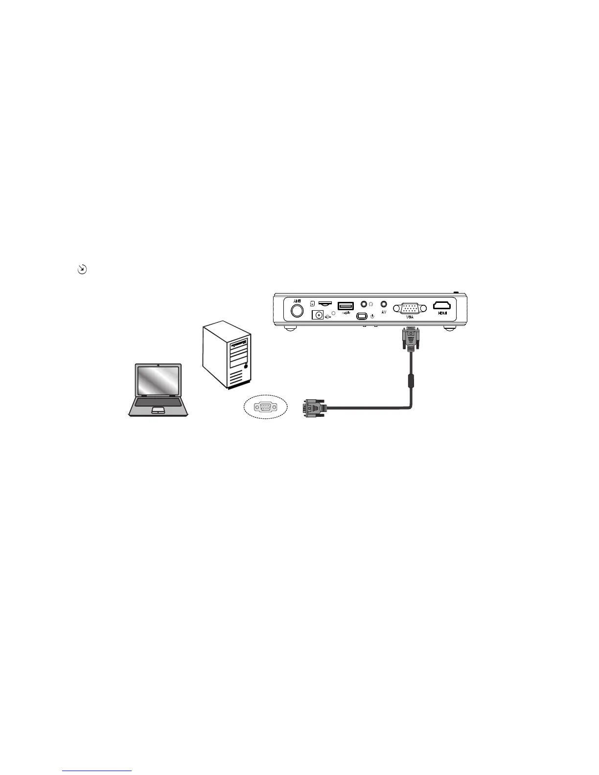 Connect one end of the VGA cable to the projector, the other end to the pc or laptop.
