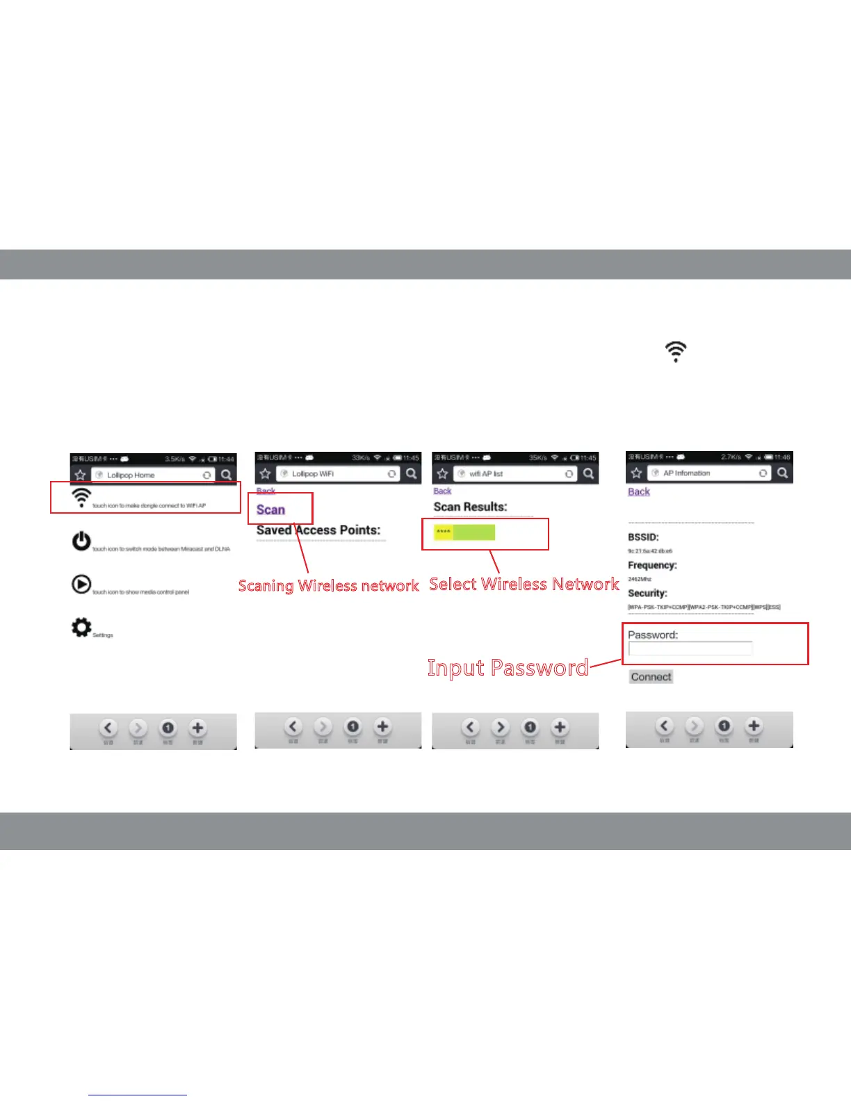After connection successfully, open browser, input“192.168.49.1”Select , click“Scan”,select