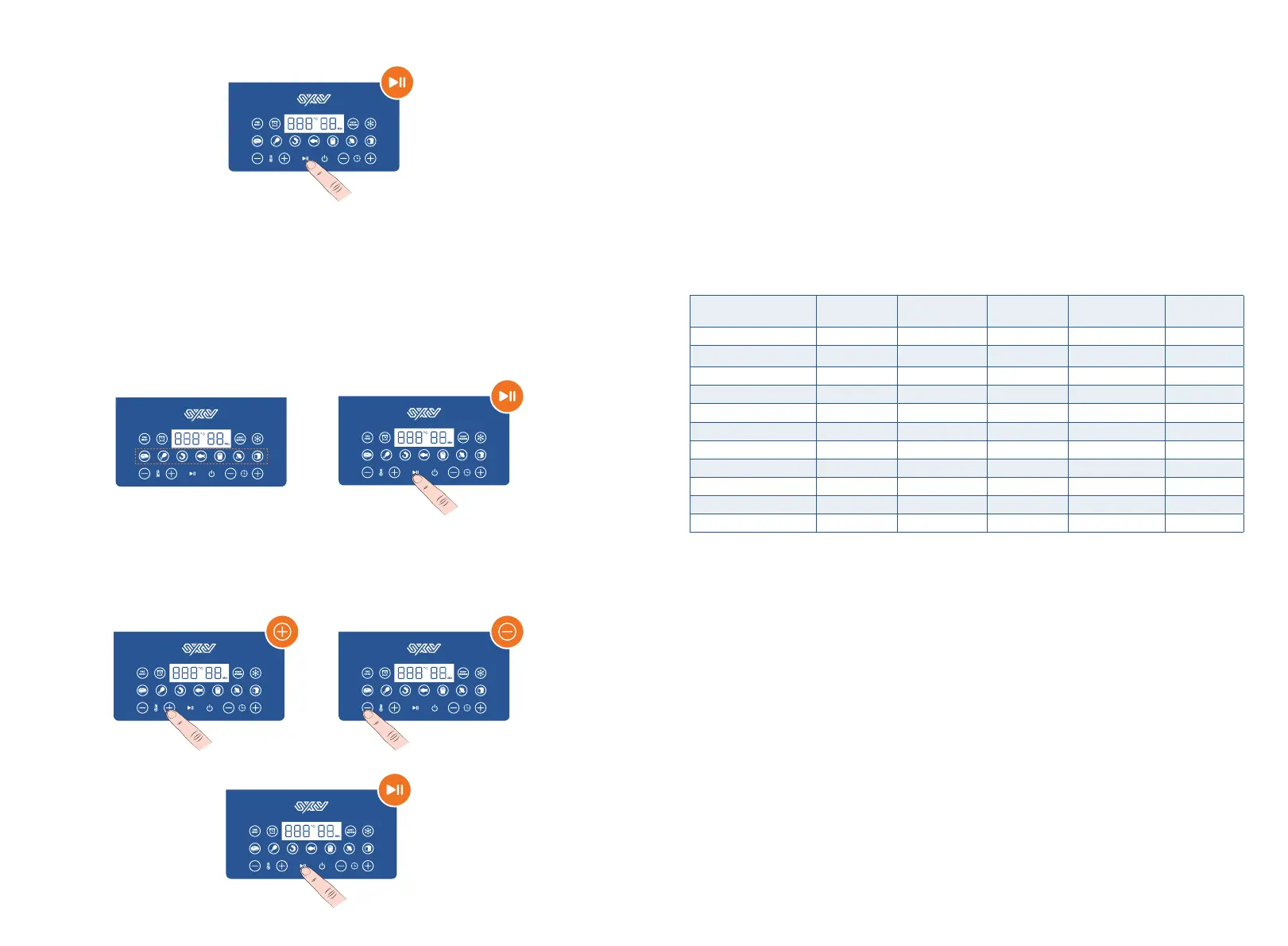 Una vez configurada, la temperatura o el tiempo de cocción parpadearán tres veces para confirmar