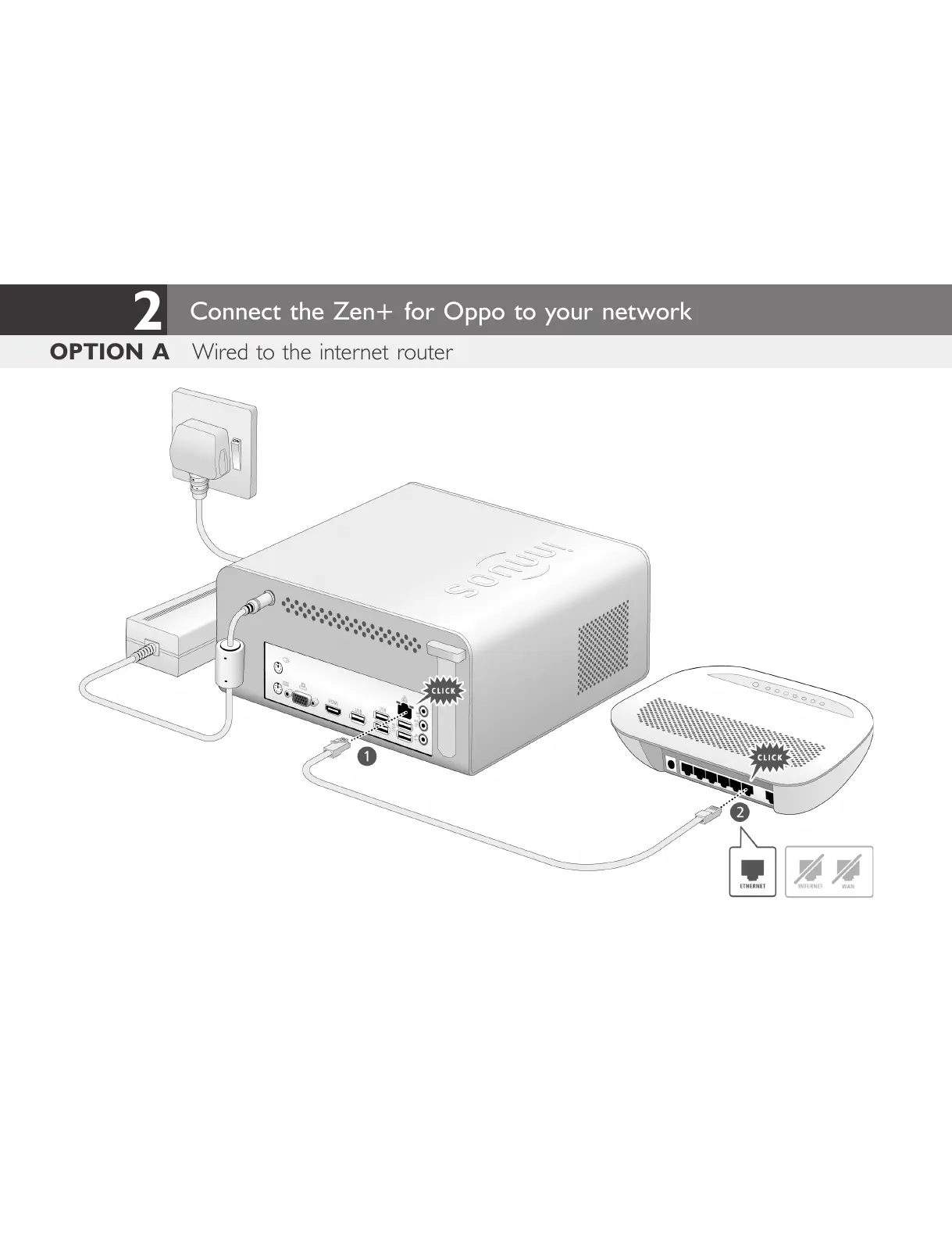 innuos Zen+ - Connect the Zen+ for Oppo to your network: Option A; Option A Wired to the internet router