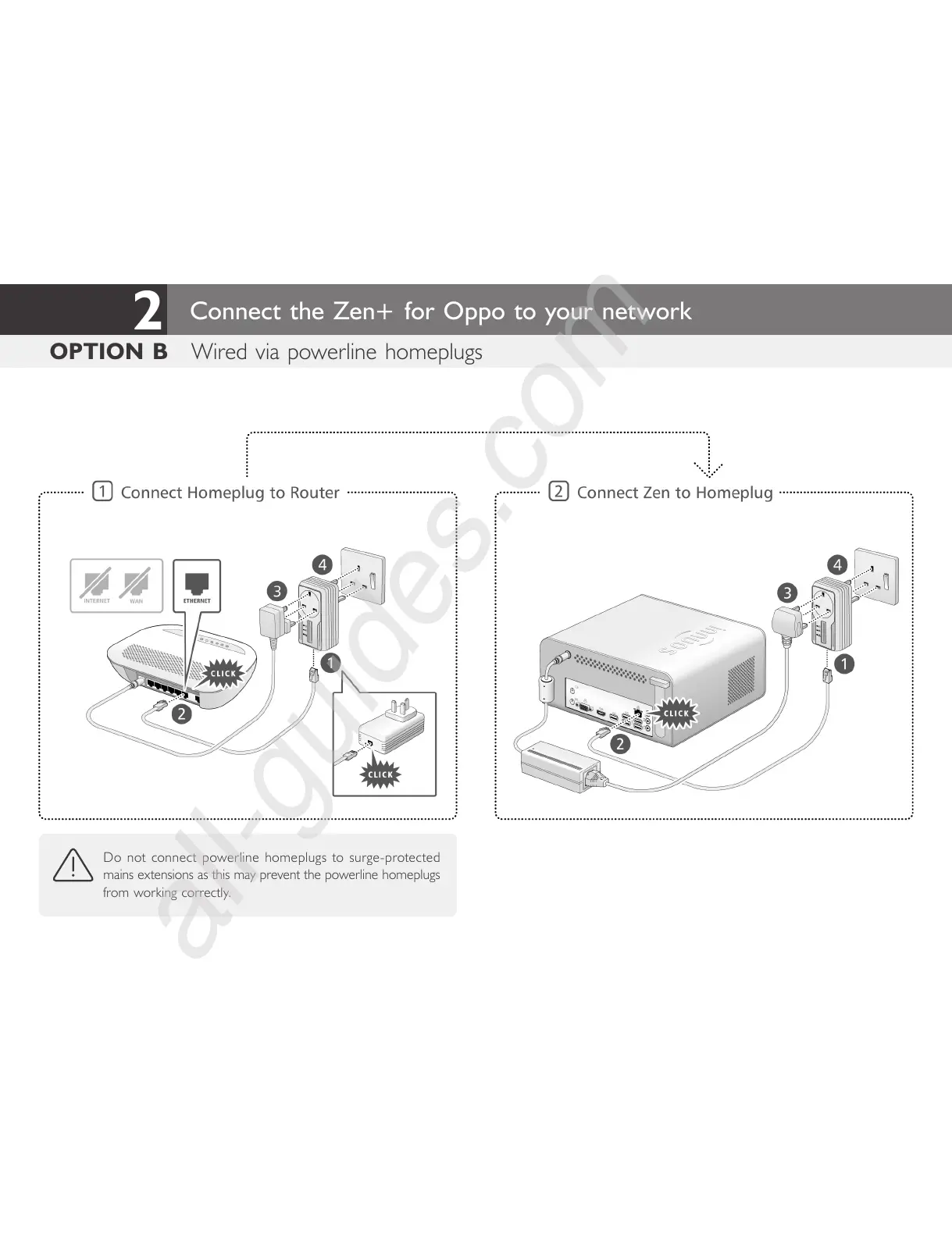 innuos Zen+ - Connect the Zen+ for Oppo to your network: Option B; Option B Wired via powerline homeplugs