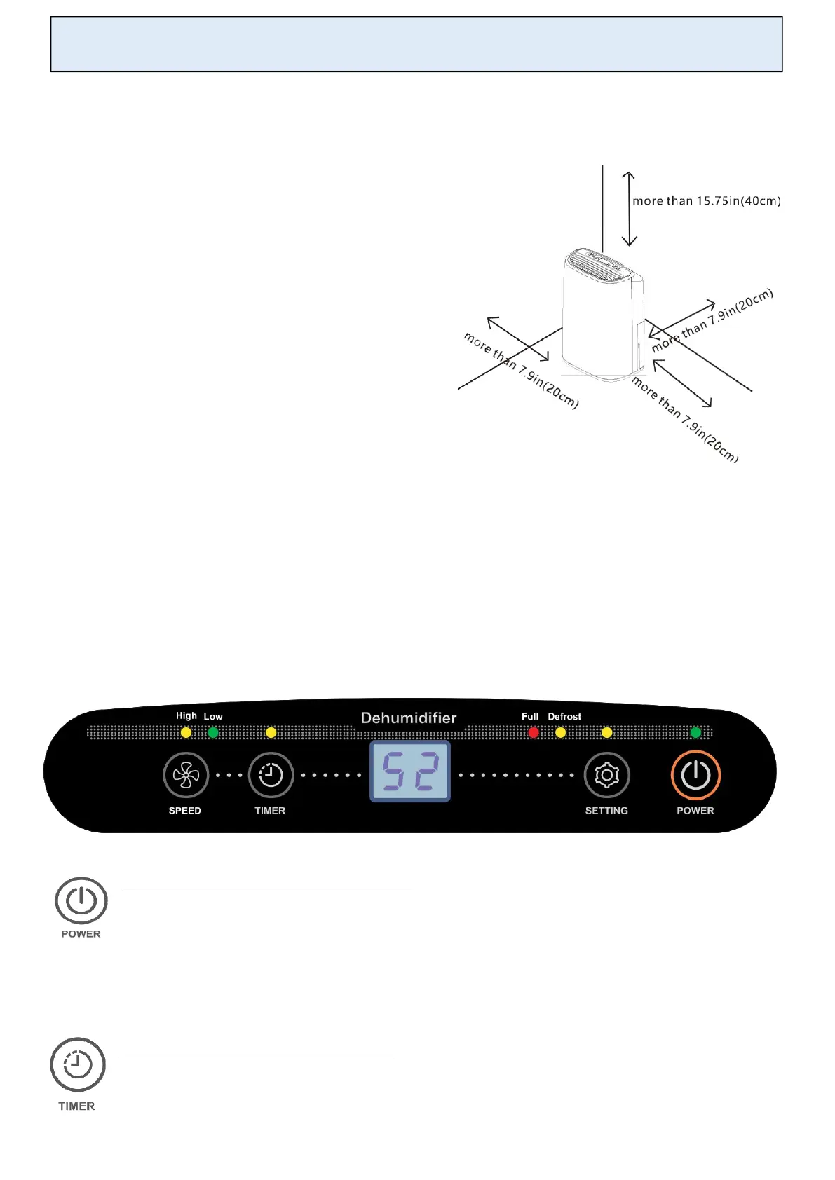 Press the POWER button once to turn on/off the dehumidifier. When the
