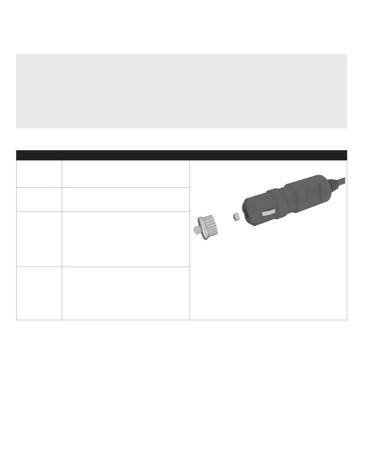 W przewodzie zasilającym prądu stałego zapalniczki znajduje się bezpiecznik. Jeśli przewód zasilający prądu stałego jest podłączony do