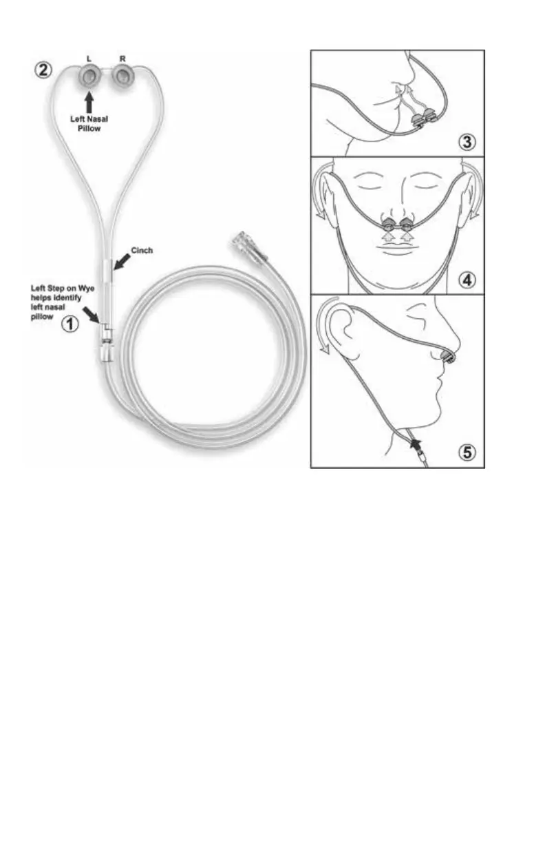 2. Hold the interface tubing limb with the oset in your left hand. The openings of the nasal
